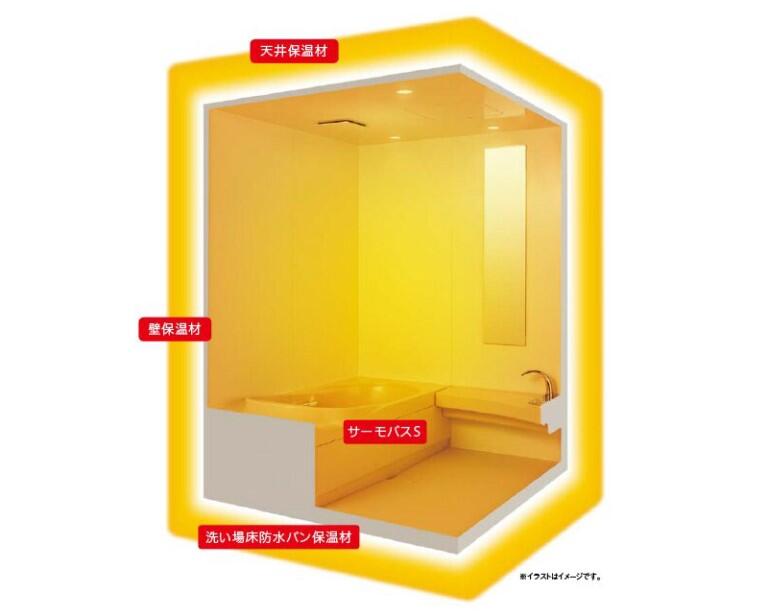 バスルームの天井、壁、床に保温材をプラスして保温性を高めています。省エネにもつながり入浴時の温かさを守ります。