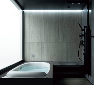 職人が一つ一つ手作業で仕上げている浴槽は、透明層のアクリル鏡面仕上げで最高級のなめらかさ。また、浴槽の縁のツートーンカラーはLIXIL商品ならでは。ツートンになっていることで空間に奥行が生まれます。