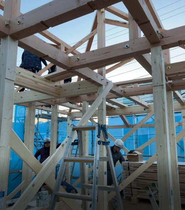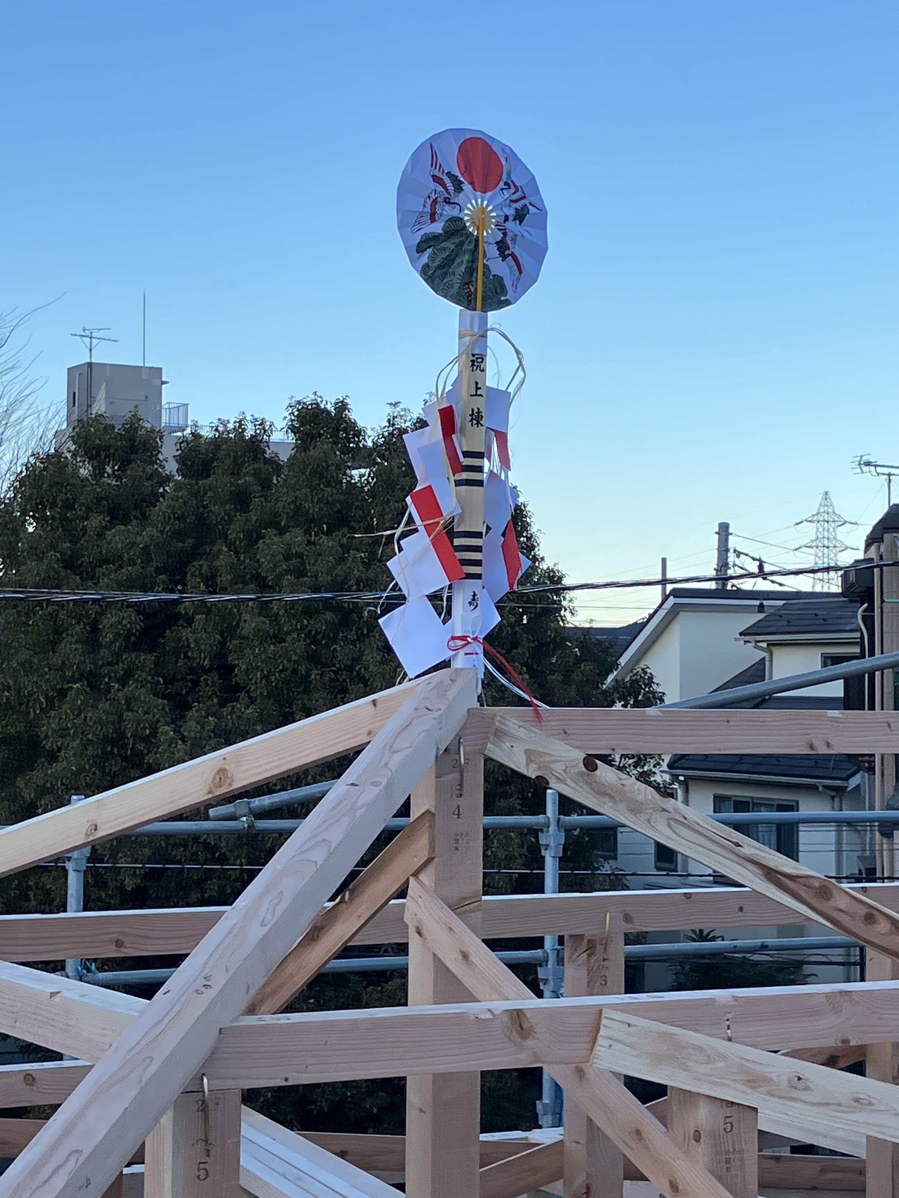 先日H様邸の上棟式を無事に執り行うことができました。今まで図面でしか想像できなかった空間が、たった1日で家の骨組みが出来上がり、お施主様にとっては間取りなど実感して頂ける貴重な1日となりました。