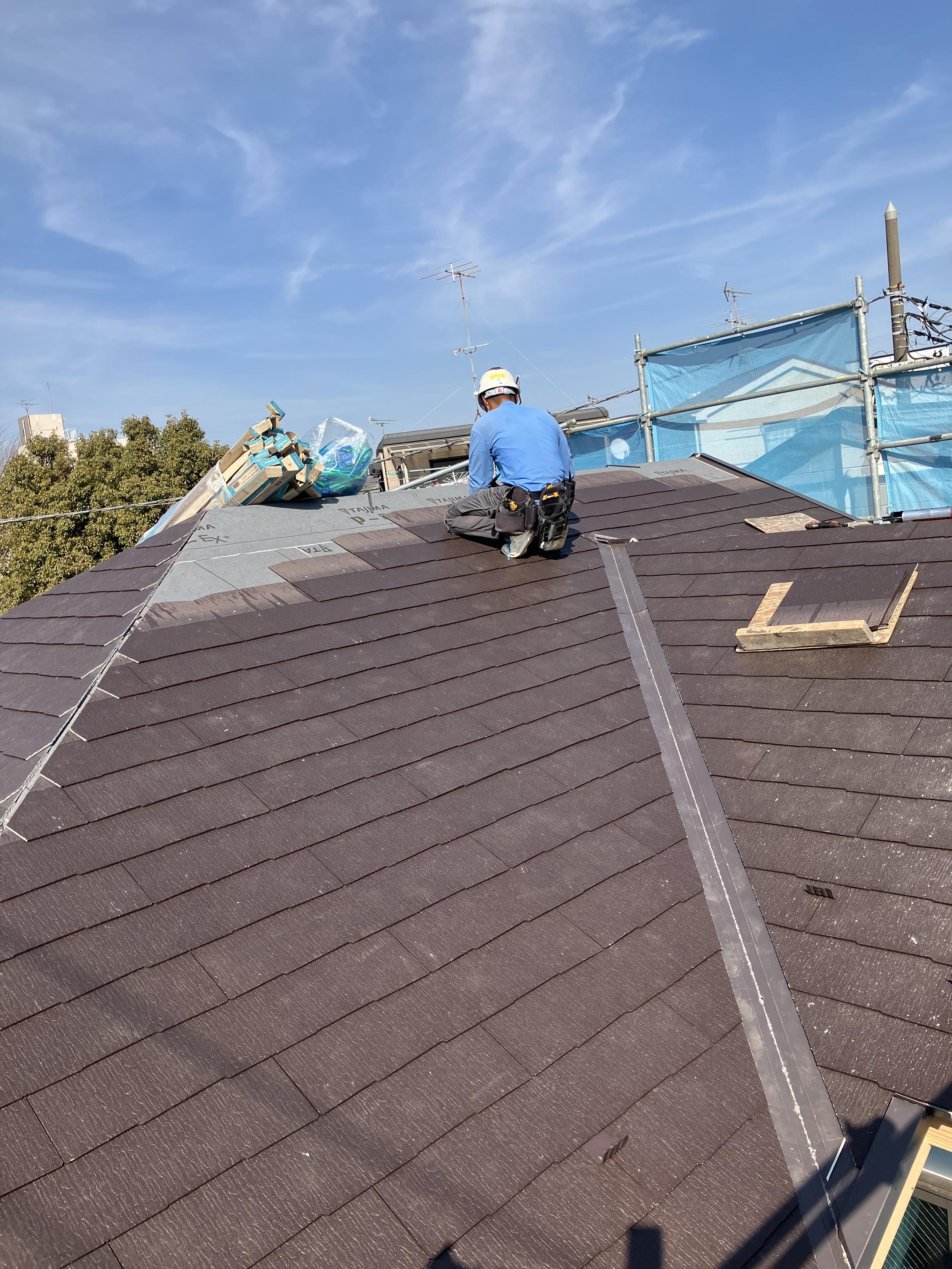 傾斜のある屋根の上で、屋根材をカットしたりとテキパキ作業されている姿がとても印象的でした。