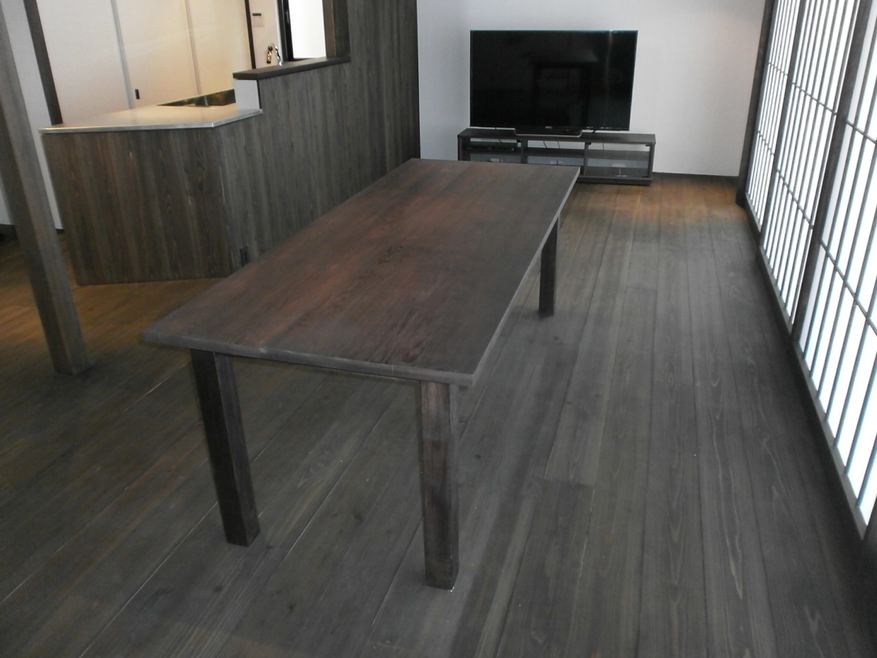 既成のテカテカしたウレタン塗装の家具では得られない、職人の手から生み出されたオンリーワンのテーブルの存在感がここにあります。