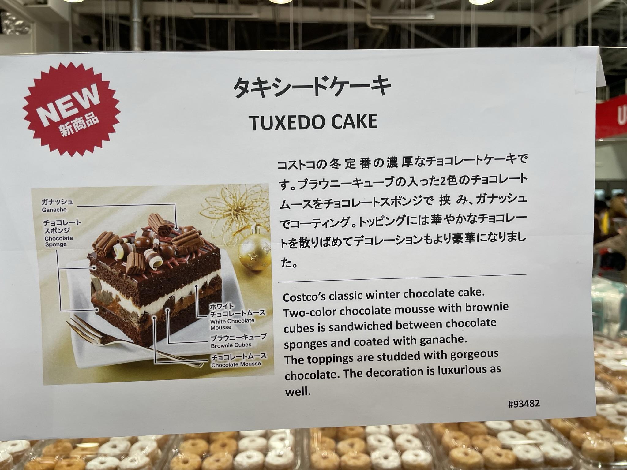 コストコの冬限定の濃厚なチョコレートケーキです。ブラウニーキューブの入った2色のチョコレートムースをチョコレートスポンジで鋏み、ガナッシュでコーティング。トッピングには華やかなチョコレートを散りばめてデコレーションもより豪華になっています。2年おきにリニューアルするそうです。