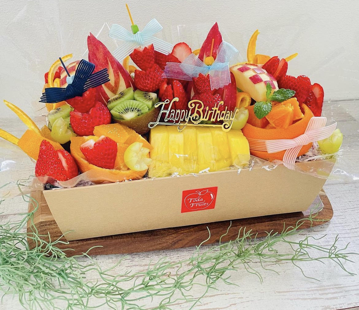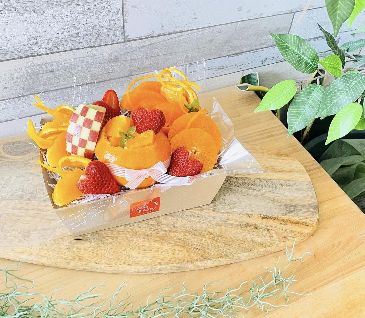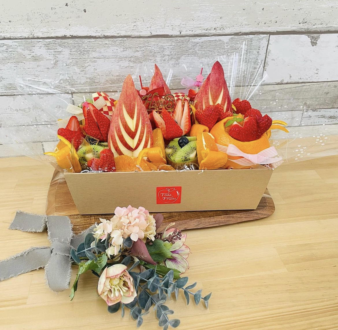 また、お店に頼めば果物をかわいく飾り切りしたギフトボックスなどを作ってもらえるのでプレゼントにも人気です(^o^)丿ちなみに、小が2500円~大が4000円~だそうです♪