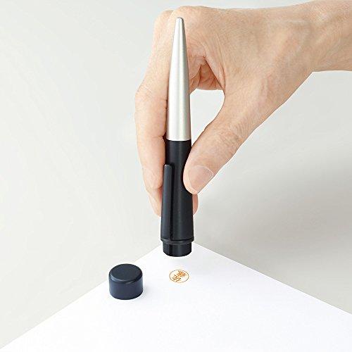 1本で「書く」と「捺印」ができるボールペン。印面は、商品購入後にネットまたは商品に同封された専用ハガキでオーダーする仕組みになっています。