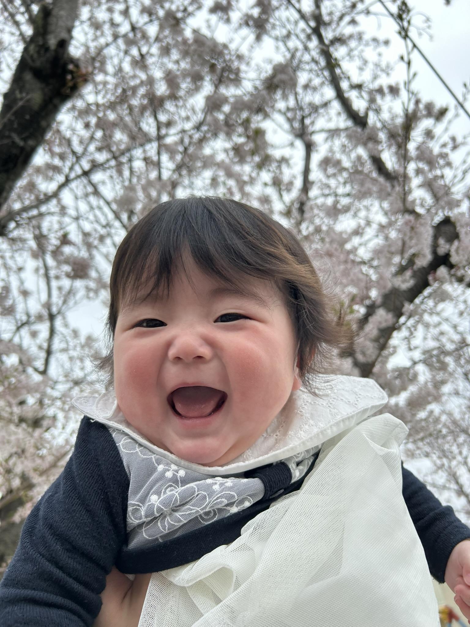 保育園にあった桜がきれいだったので帰りに写真を撮りましたが、珍しく写真を撮るときにいい笑顔のベストショットが撮れました(笑)