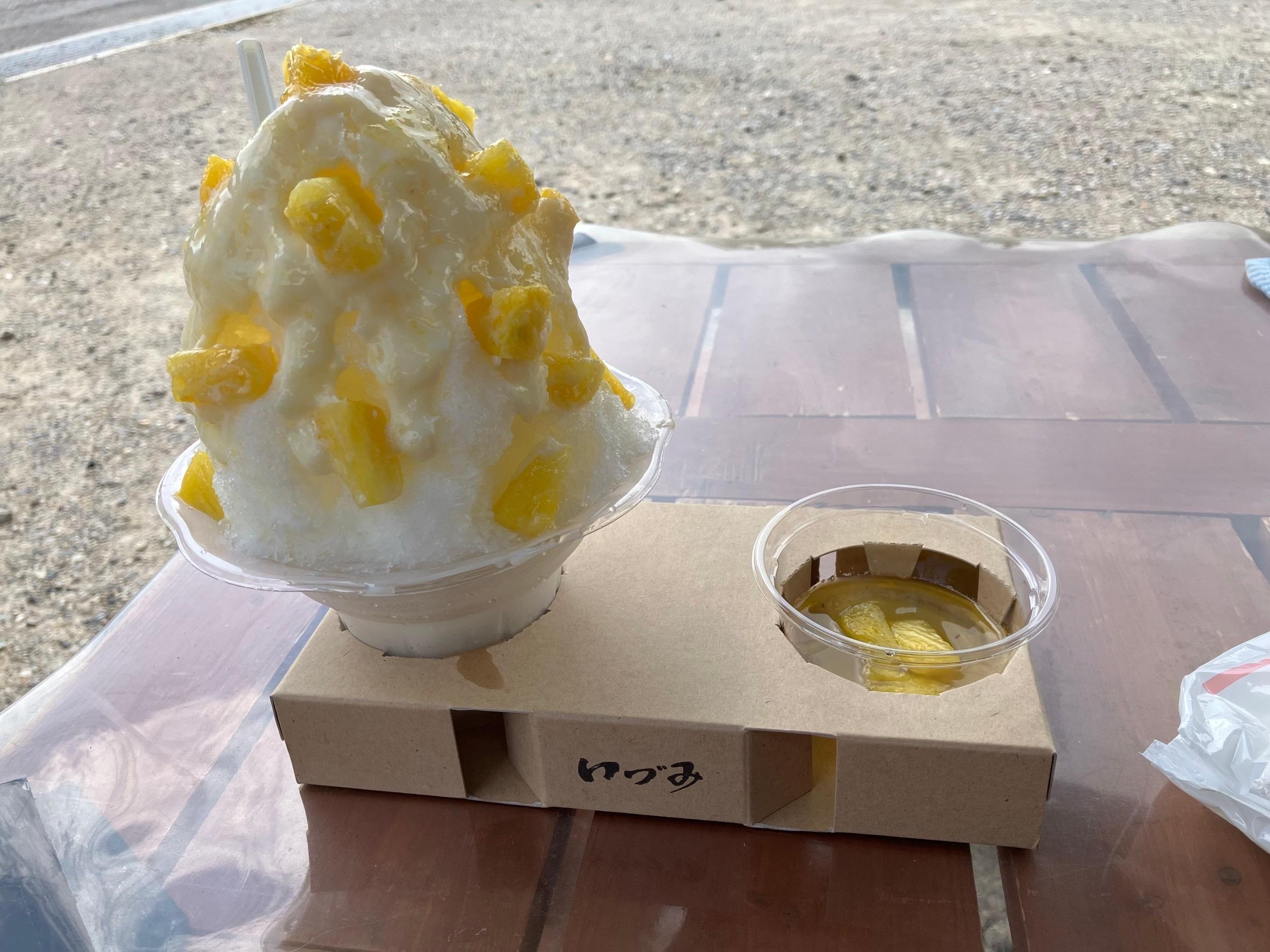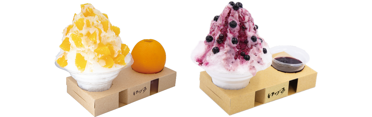 いづみさんでは地元、額田地区の天然水「仙水」と、ブルーベリーをはじめとする地域の特産物をかき氷にして、ビビットシェイブアイスという名前で販売しています。かき氷はどれも果実をまるごと使った贅沢仕様で、果汁をかけて食べるのがいづみ流。思わず撮影したくなるような、トロピカルな見た目も特徴です。