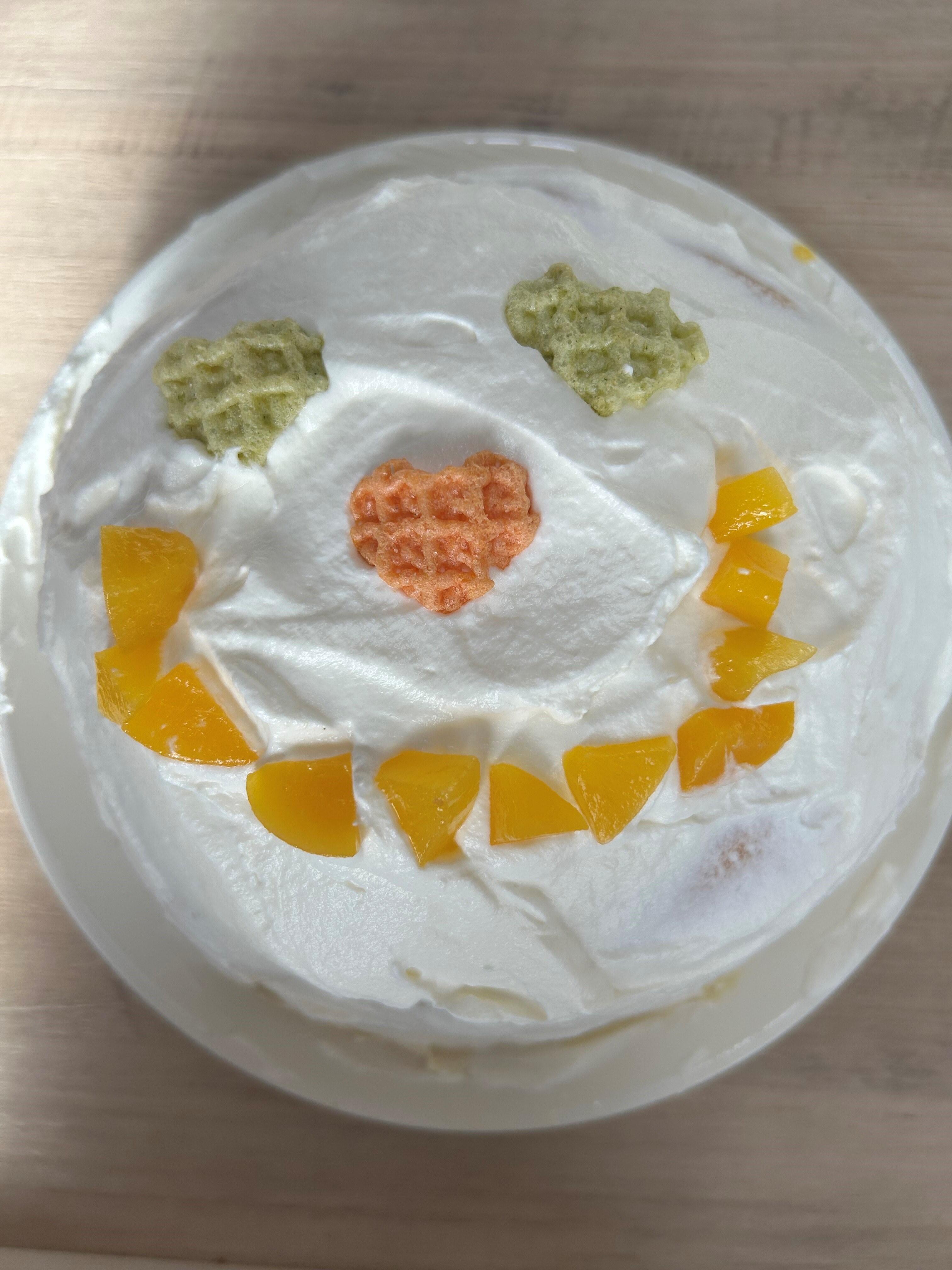 その後ミルクレープを作りたい!と上の子が以前行っていたので、一緒に作りました♪間に果物を入れたりクリームをのせたりしてくれたのですが、もりもりに入れすぎてすごくでっかいケーキになってました(笑)