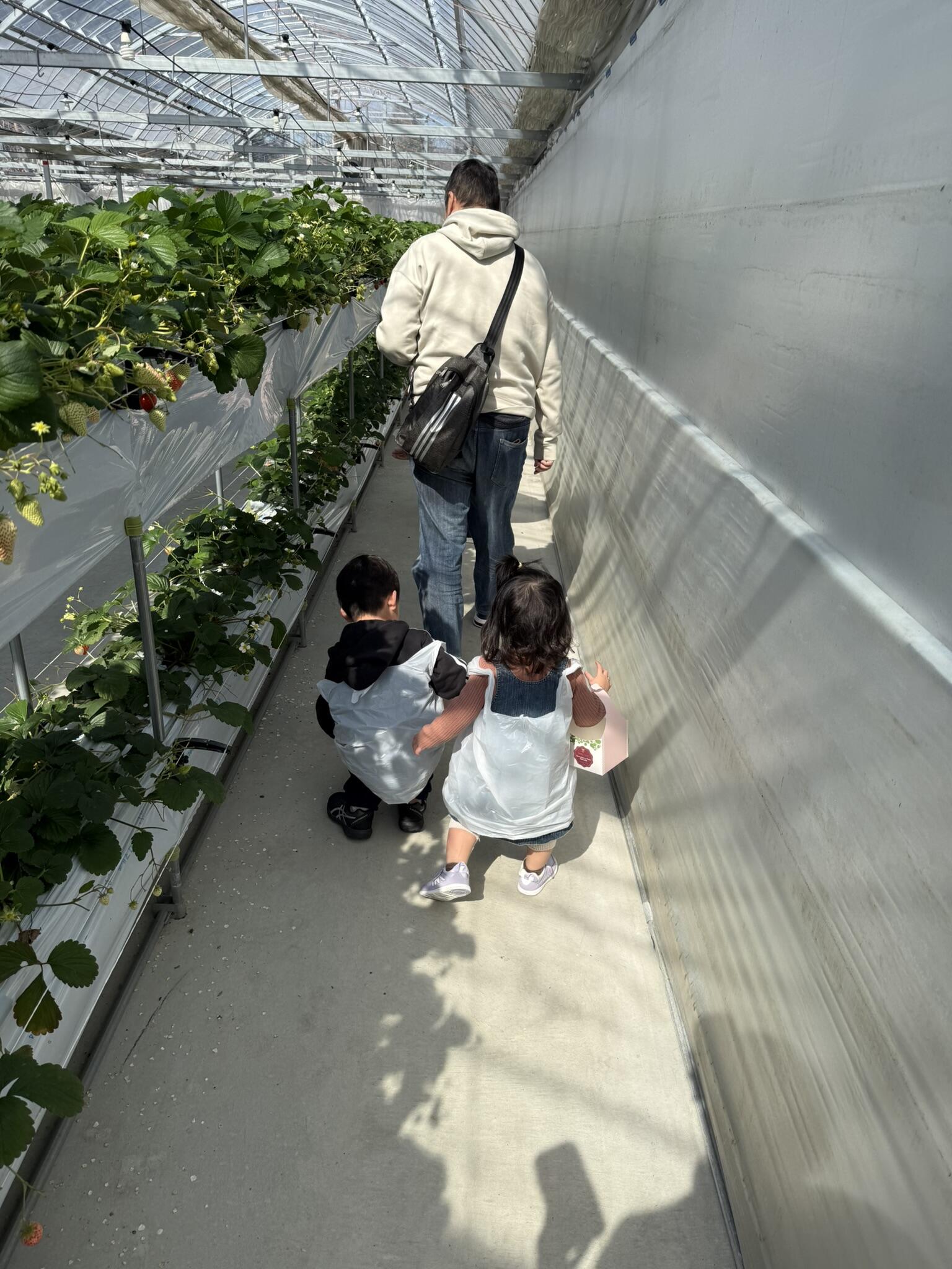 初めて行ったのですが、ファミリー層のお客さんが多くてその理由も行ってみて分かりました。外には子供が遊べるトランポリンや顔はめパネルがあったり、カフェなどもあります。また、ハウス内には採ってきた苺をゆっくり座って食べられる場所もあり。子供連れにはとてもありがたい施設になっていました♡