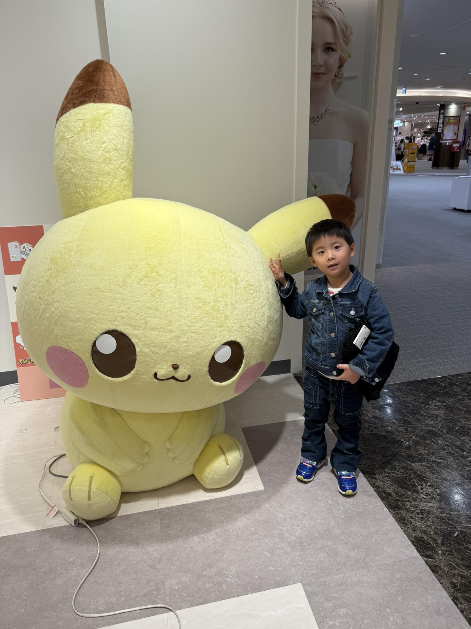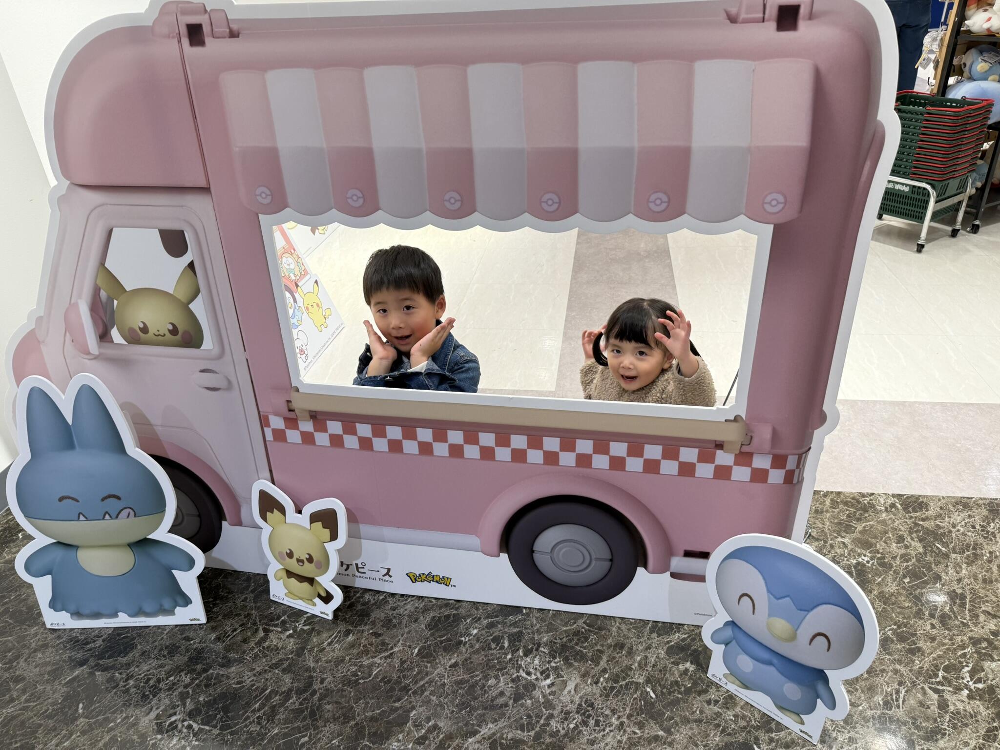 写真スポットとして、大きなピカチュウとポケモンバスのパネルが置いてあり、子供たちが見た瞬間嬉しそうに走っていきました(笑)