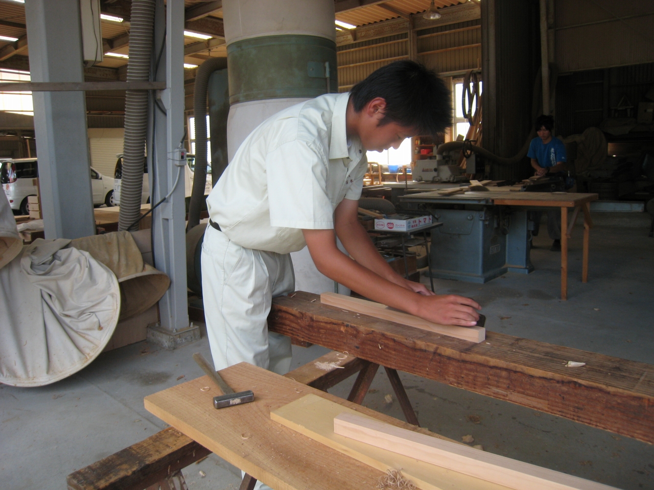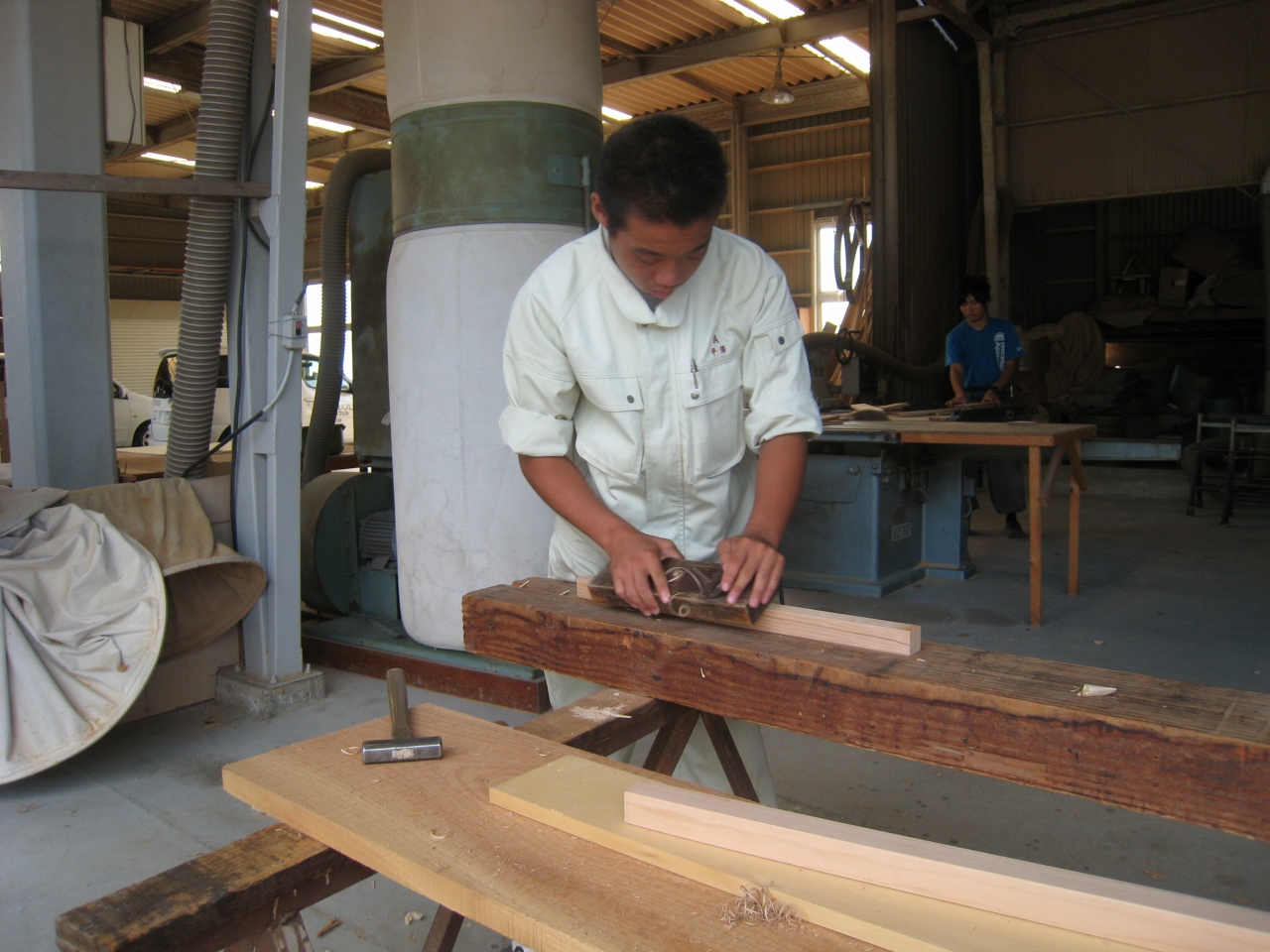 現役の大工さんによる機械や工具の説明。