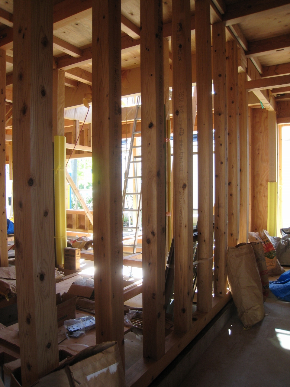 ←内部の状況です。なんと、柱がすべて455mm間隔に(@_@)構造的な安心感もありとっても豪華に見えました!