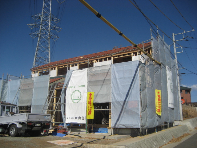 屋根工事もほぼ完了し大工さんが工事の真っ最中!!