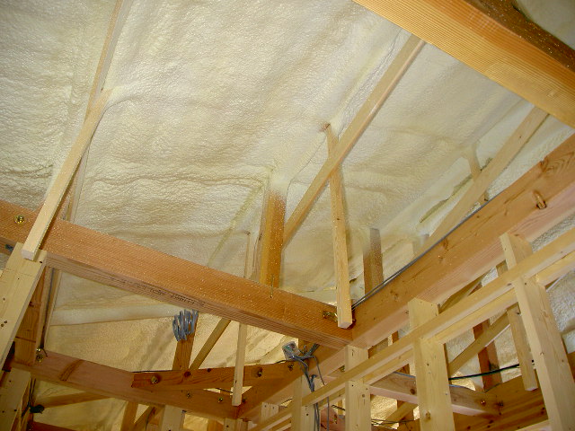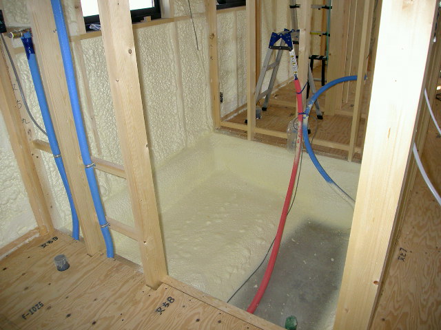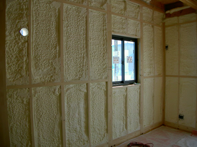 壁も小屋もお風呂周りも断熱材の吹付で覆われています。
