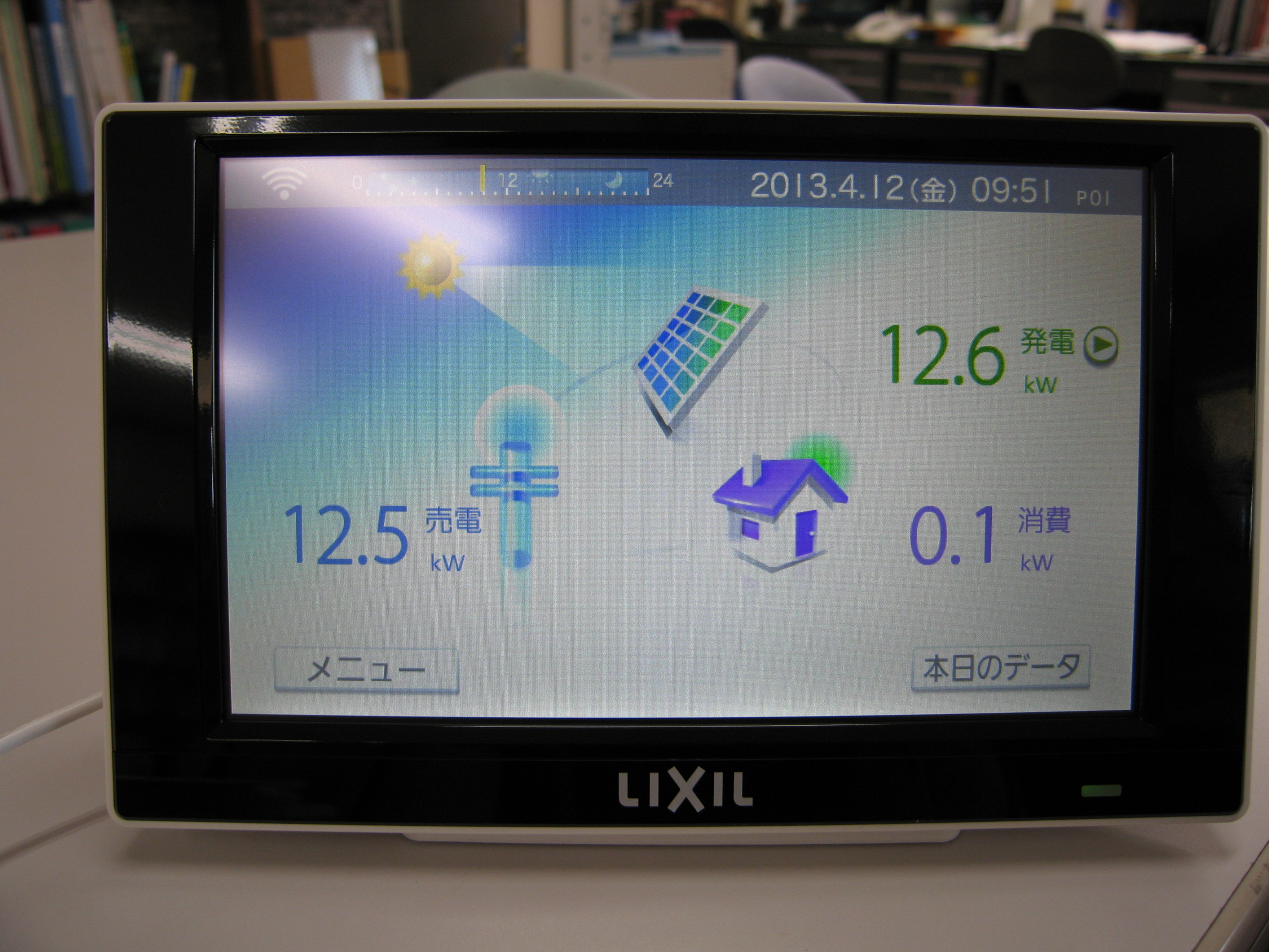 カラーモニターで発電量と売電量が一目で分かるんです。