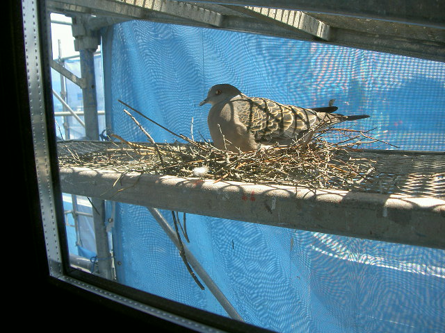 ギョッ・・・ぎょ ギョ 魚 現場の仮設足場にハトが子供を産みました。