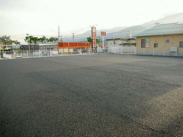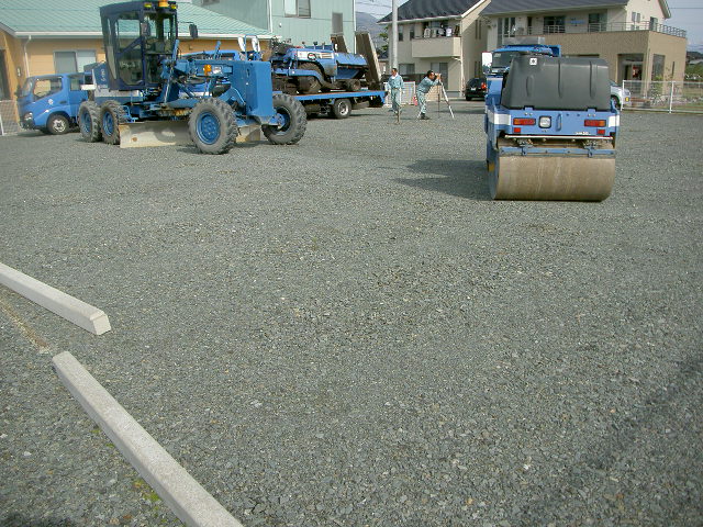 今日は、駐車場の舗装工事にダンプカー、フィニッシャー、グレーダー、ローラーと