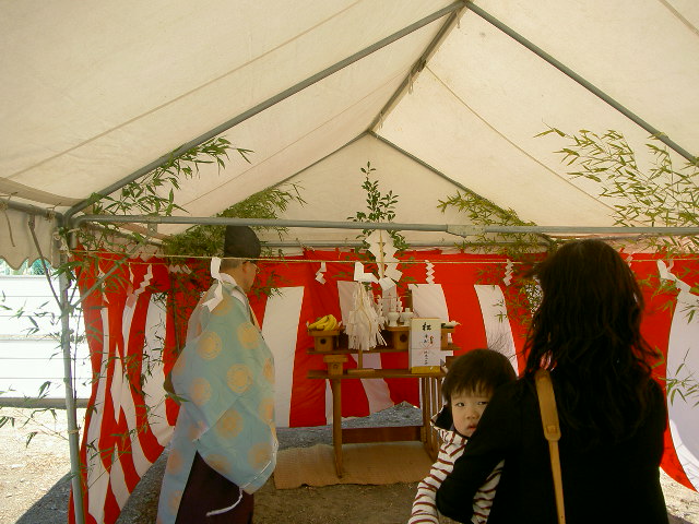 今日は朝から風が強く地鎮祭のテントや紅白の幕が乱舞状態でした。