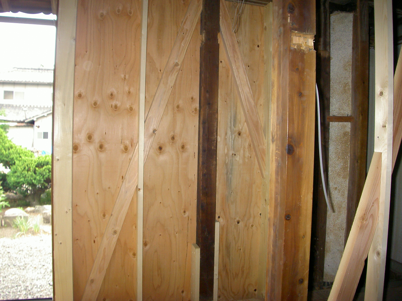 内部では、床下の補強工事、新規に筋違等の補強工事をしています。