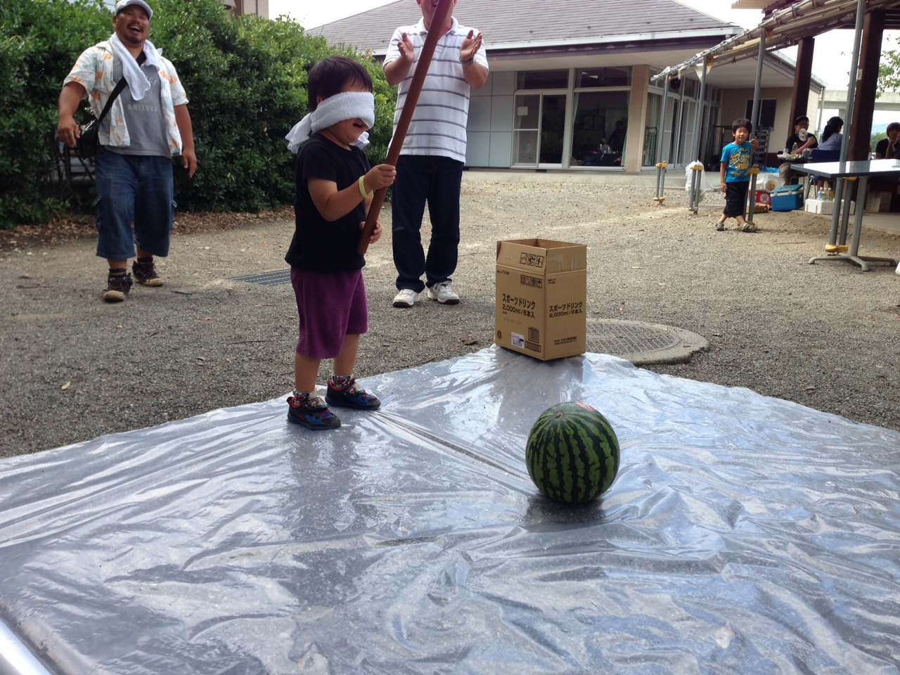 そして...「スイカ割り」には子供はもちろん、大人も大盛り上がり(^○^)