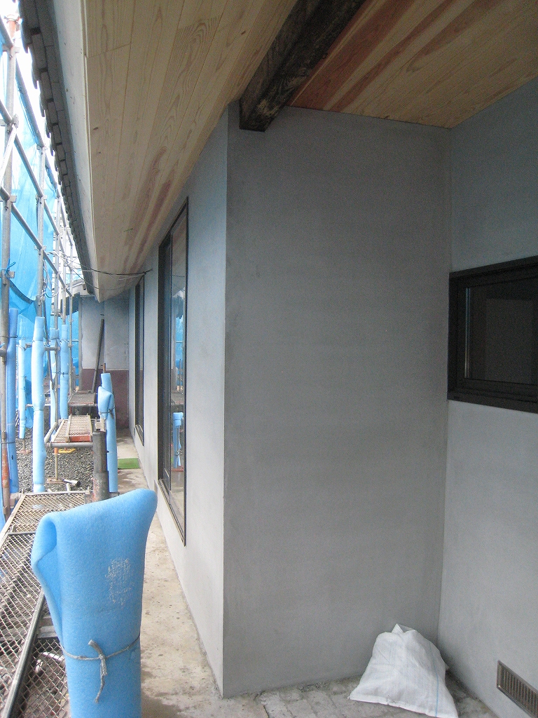 外壁の下地と軒天井の杉板は、これから仕上げ工程!