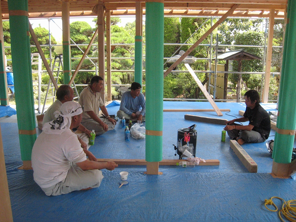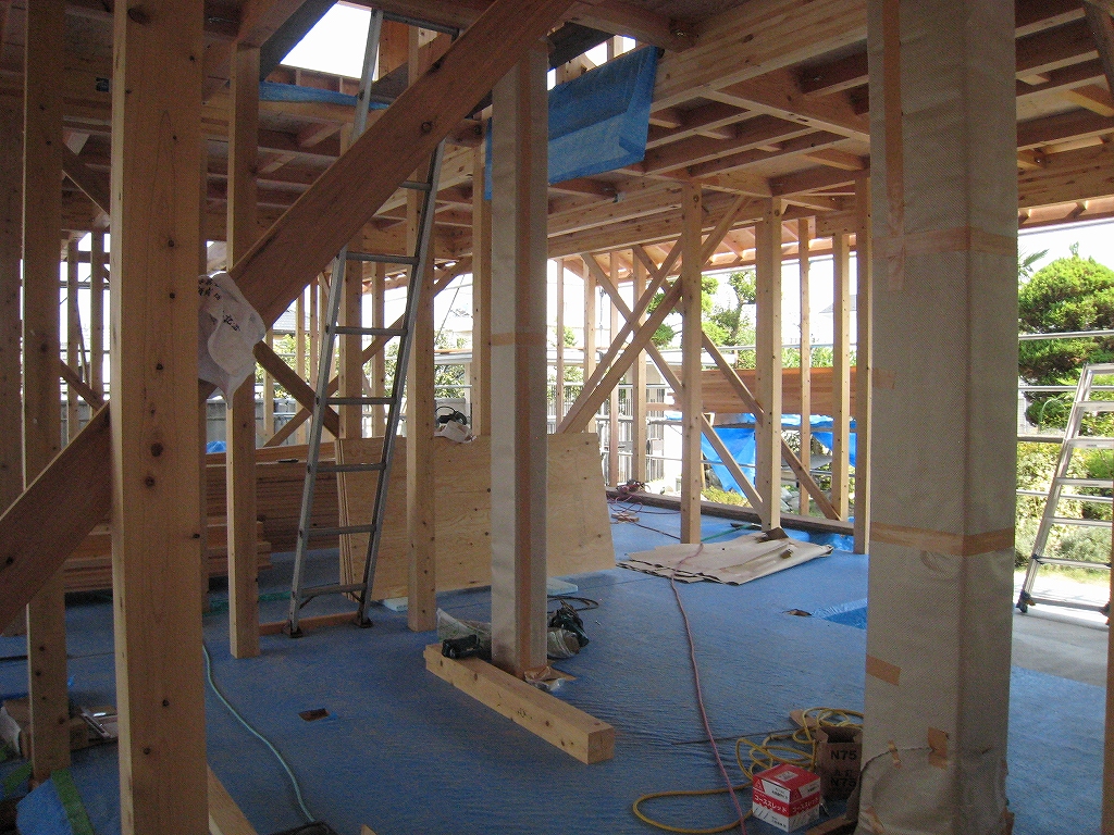 そんな中ですが、大工さん建て方真っ最中! (^◇^)