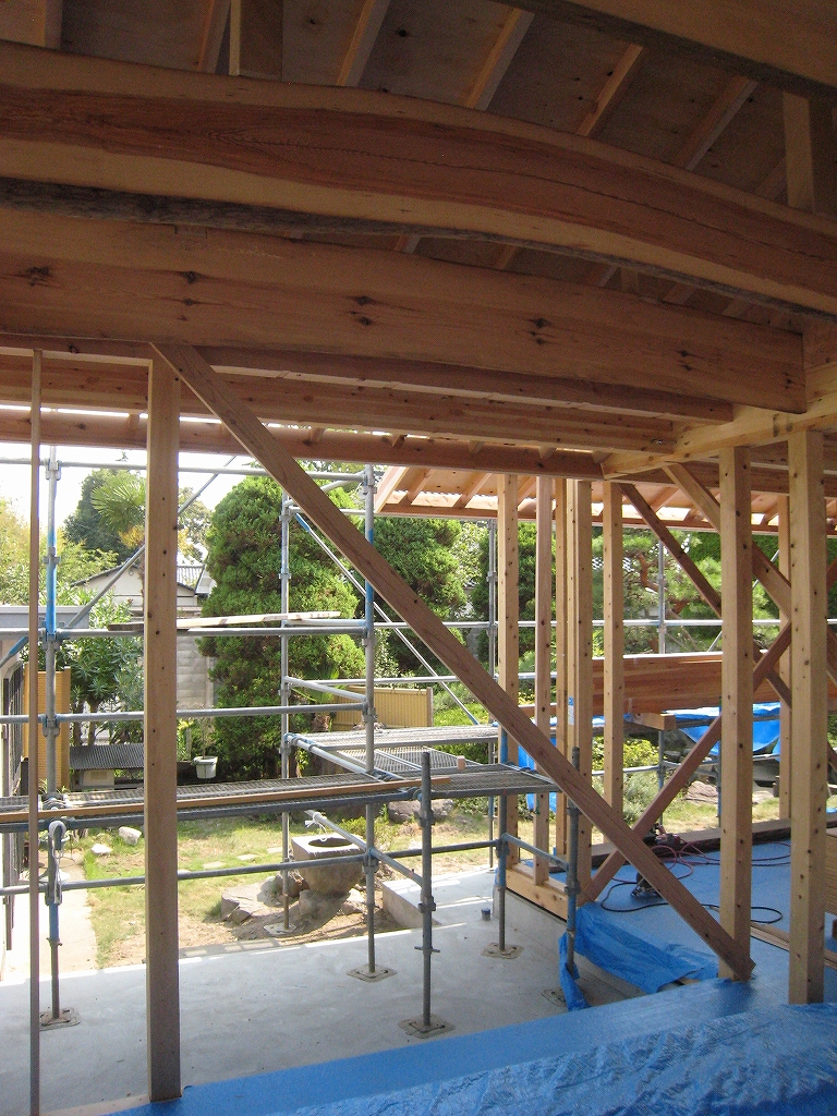 ⇑ 柱や梁など今まで建っていたお住まいのものを継承して再利用させていただいております。 <(_ _)>
