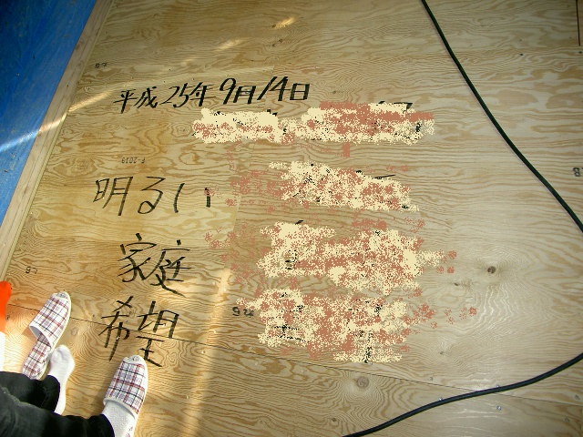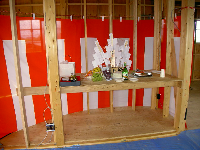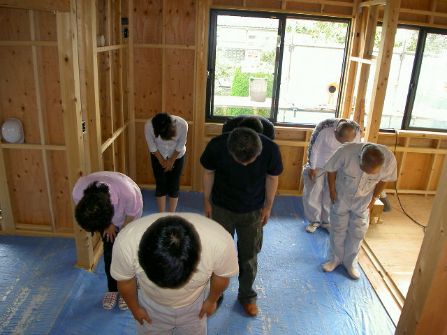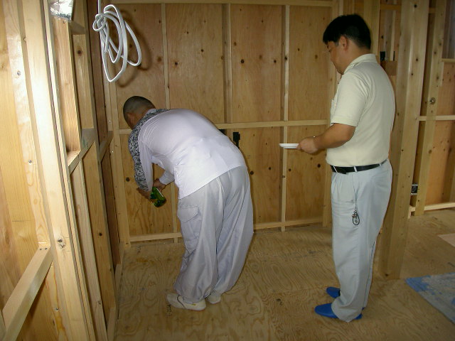 建物四隅のお清め・・・・・・次は、お施主様も上からお清め・・・・・ぽたり