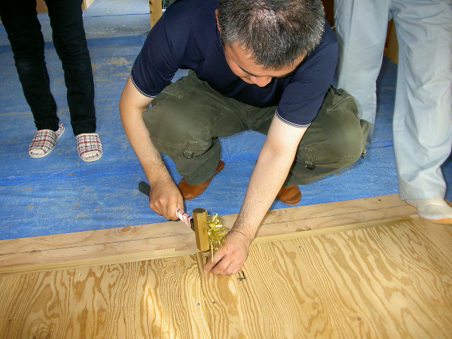 お客様との共同作業記念の金の釘打ち・・・・思い出のメッセージ・・・・・