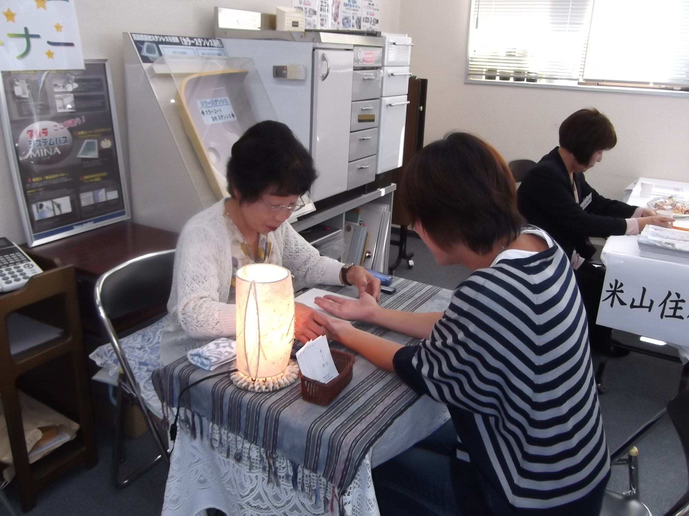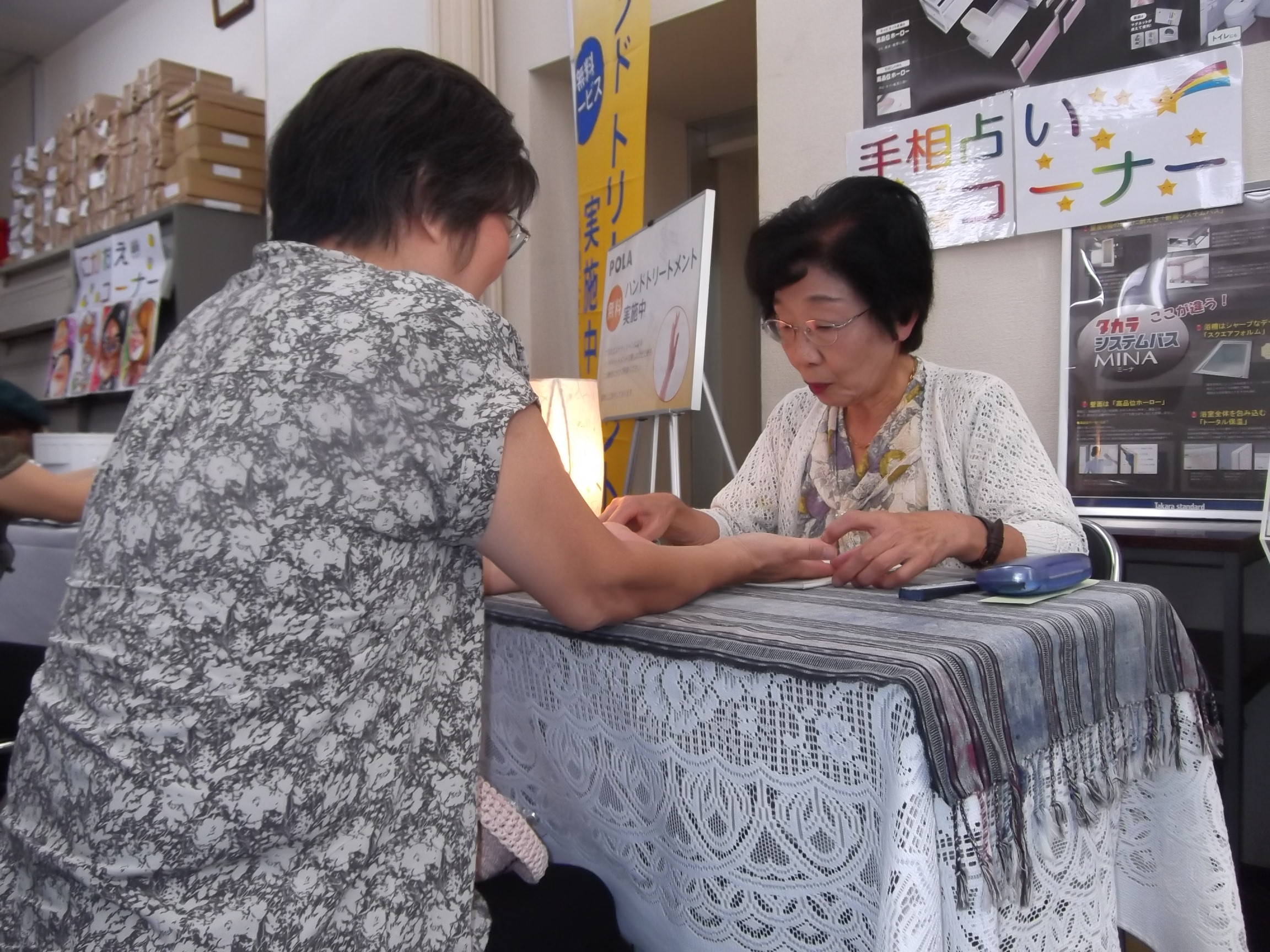 大人気の似顔絵師さんやハンドマッサージのコーナーに占いのコーナーなどなど…