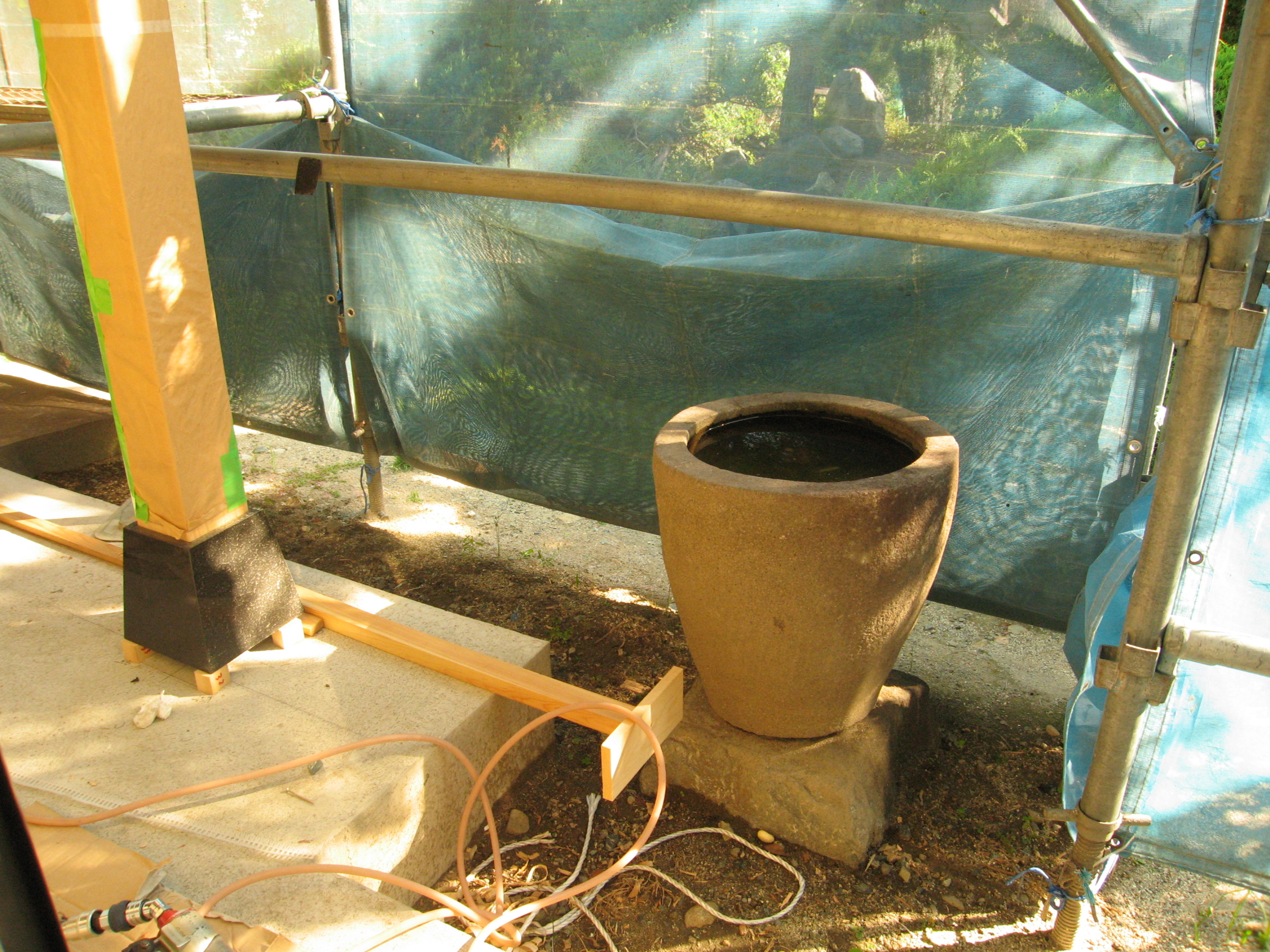 もう一枚は…玄関横に置かれた存在感のある「石の鉢」。素敵ですよね~(^。^)y-.。o○