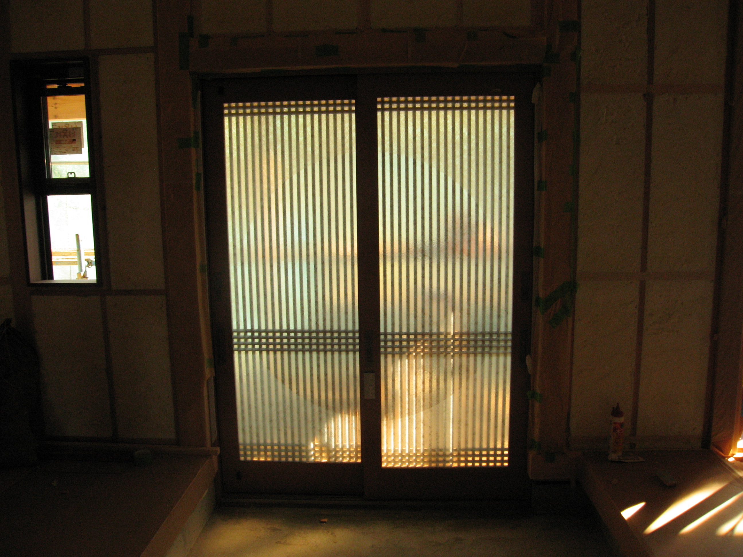 ② 玄関ガラスのラウンド(写真で分かりづらいのですが…よく見ると丸い模様が)