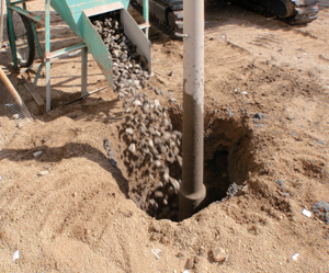 5.完成 砕石パイルの完成です。充分に締め固められた砕石パイルは、周辺の地盤へ食い込むためHySPEEDドリルの直径よりも大きく仕上がります。 |