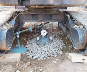 6.強度試験 最後に安定計算書通りの地耐力が確保できているか、強度試験を行います。同時に未改良部の強度試験も行い、改良前後の変化を確認します。 |