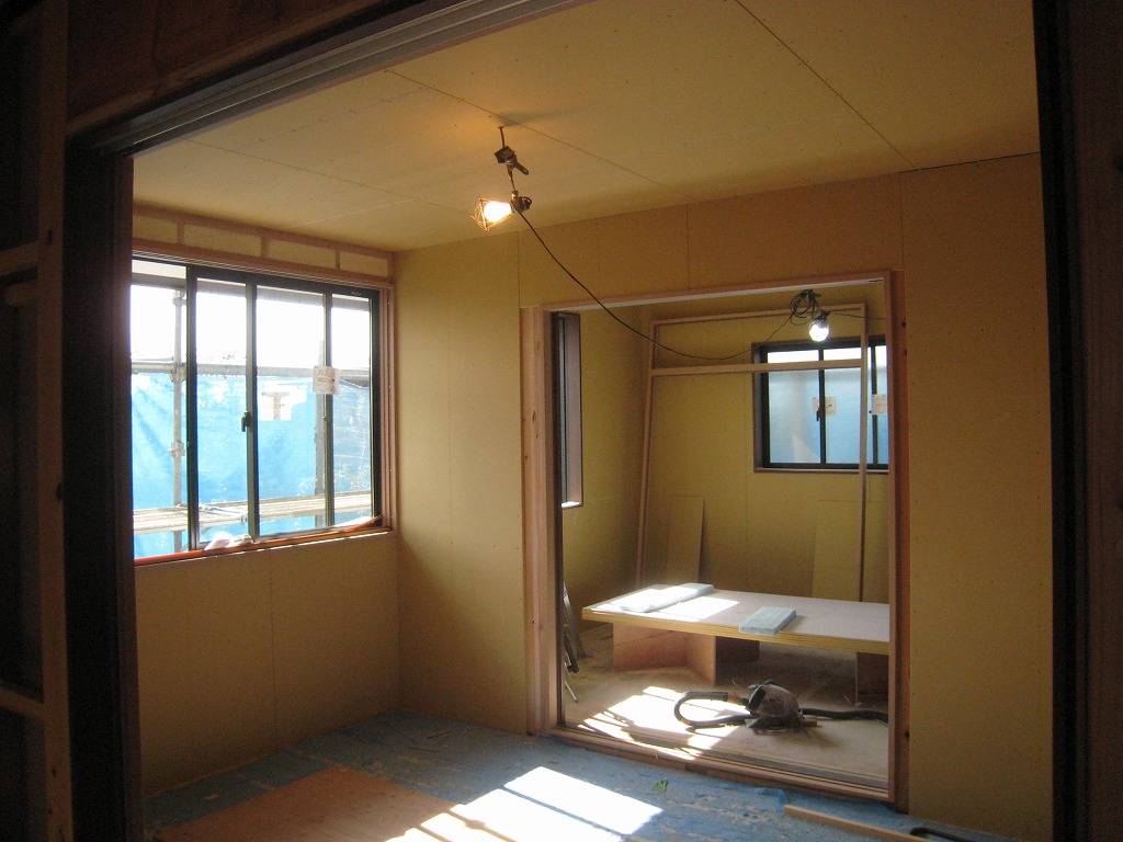 内部は天井や壁のボード貼り工事中です。
