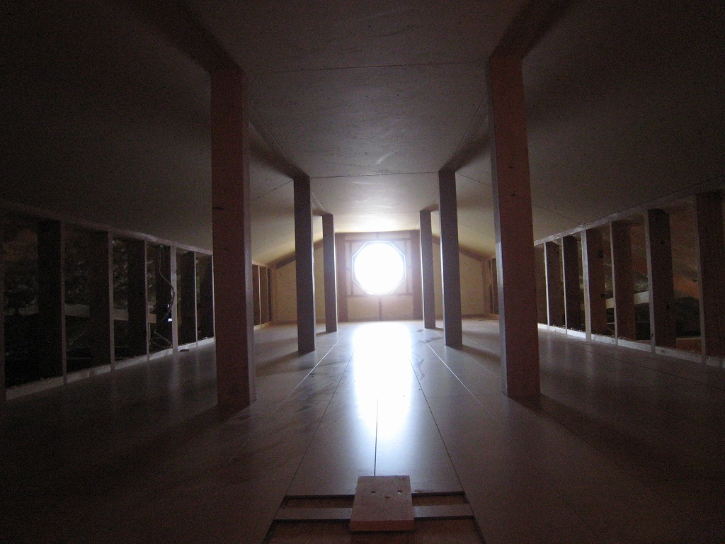 そして、小屋裏収納は家紋入りの丸窓が映える空間に!)^o^(