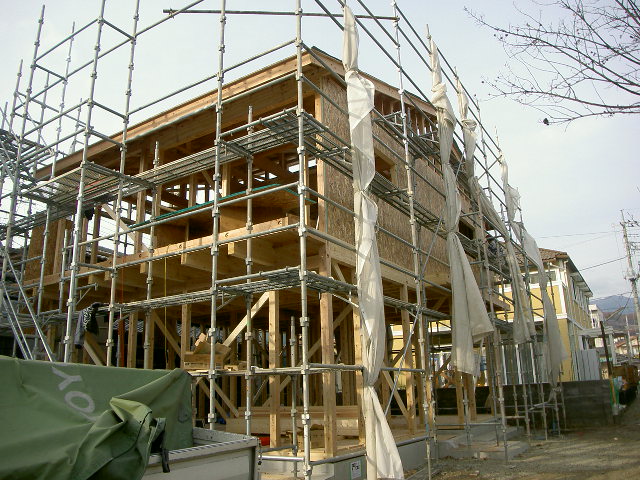 建て方から約一週間目、現場の進捗が早く本日は第三者機構による