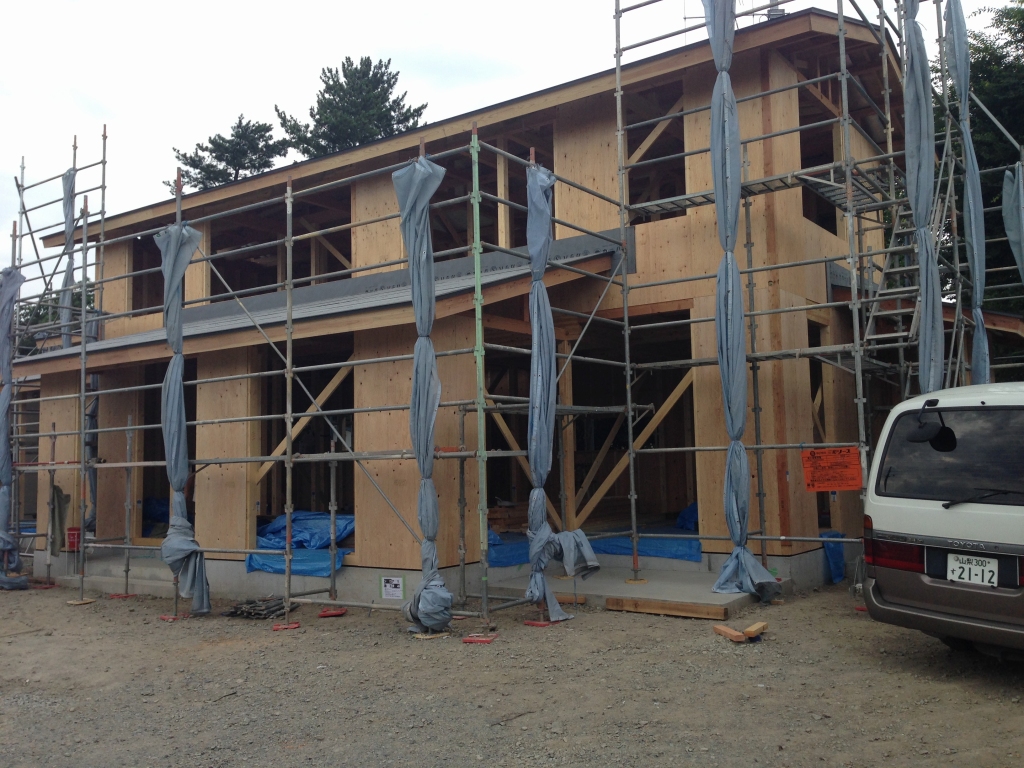 合板を貼りこみはじめて、建物の形もなんとなく見えるようになってきました!