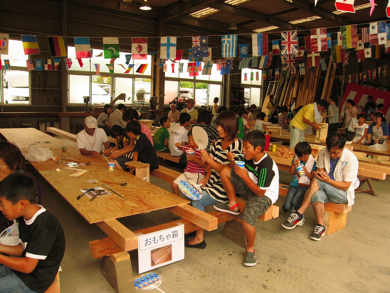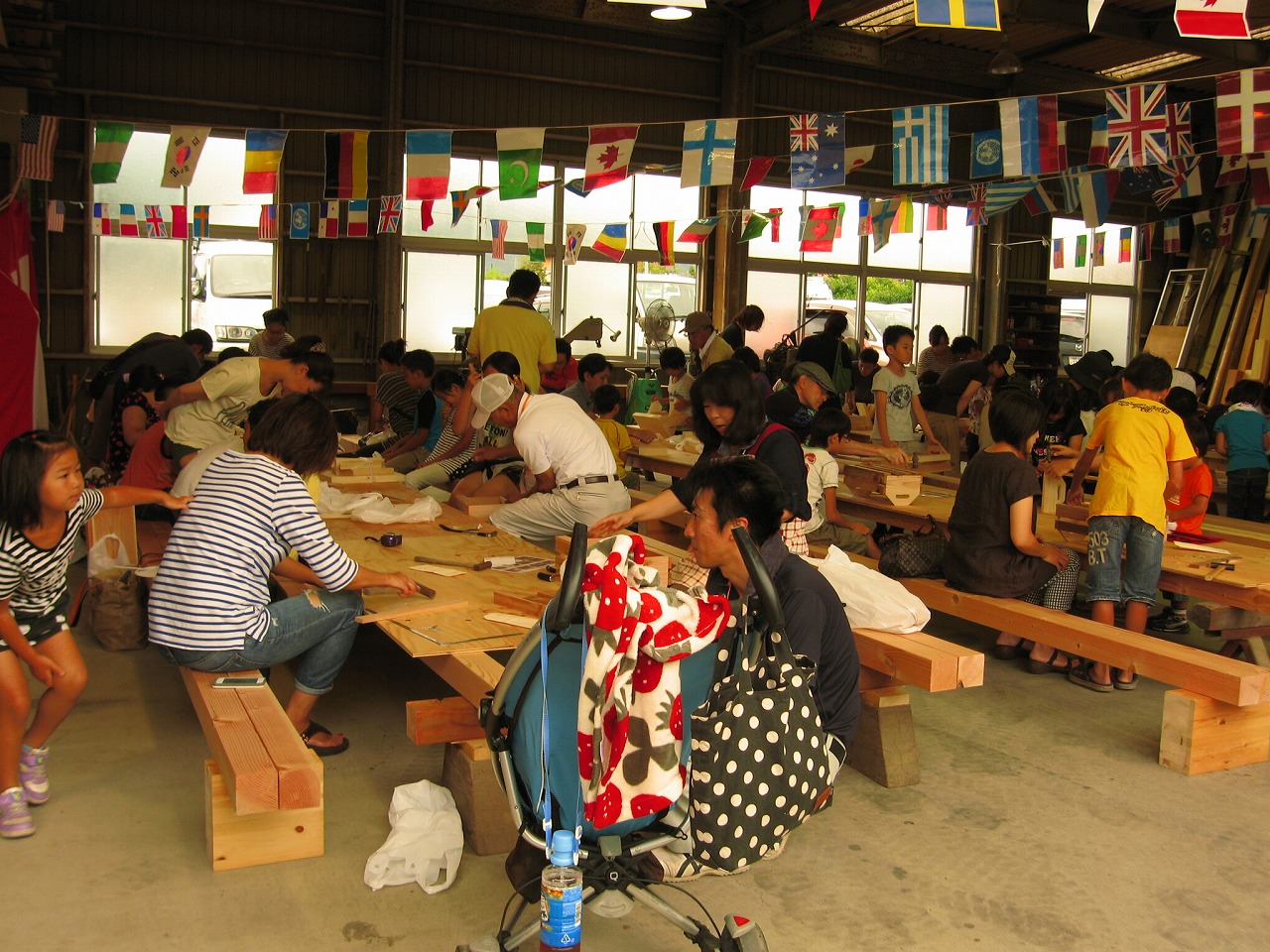 今年は初の催し「はしつくり」「丸太切り」も大好評です!