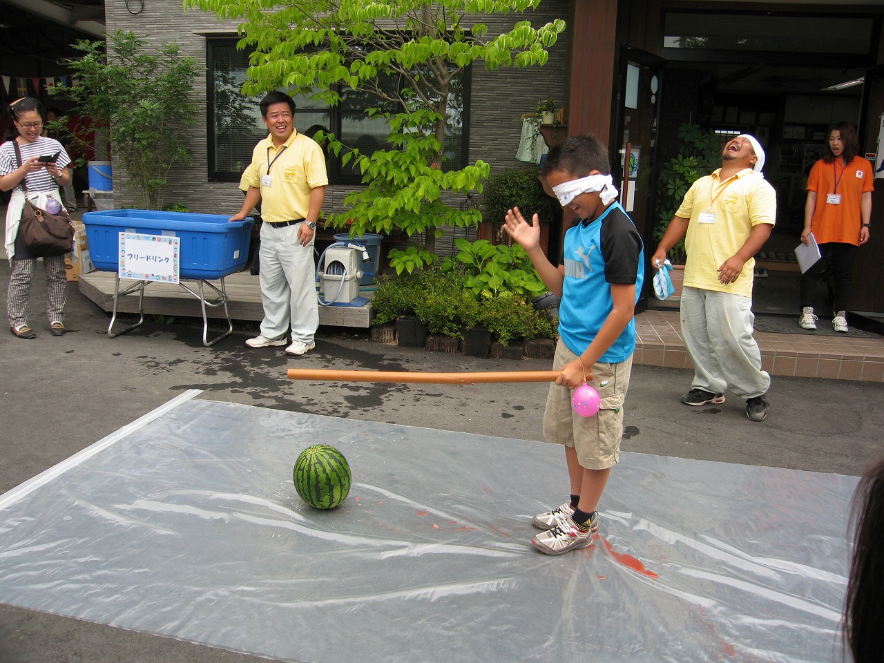 美味しいと好評のフランクフルト。ヨーヨーにかき氷・わたがしにすいか割り…と楽しんでいただけました。(^-^)