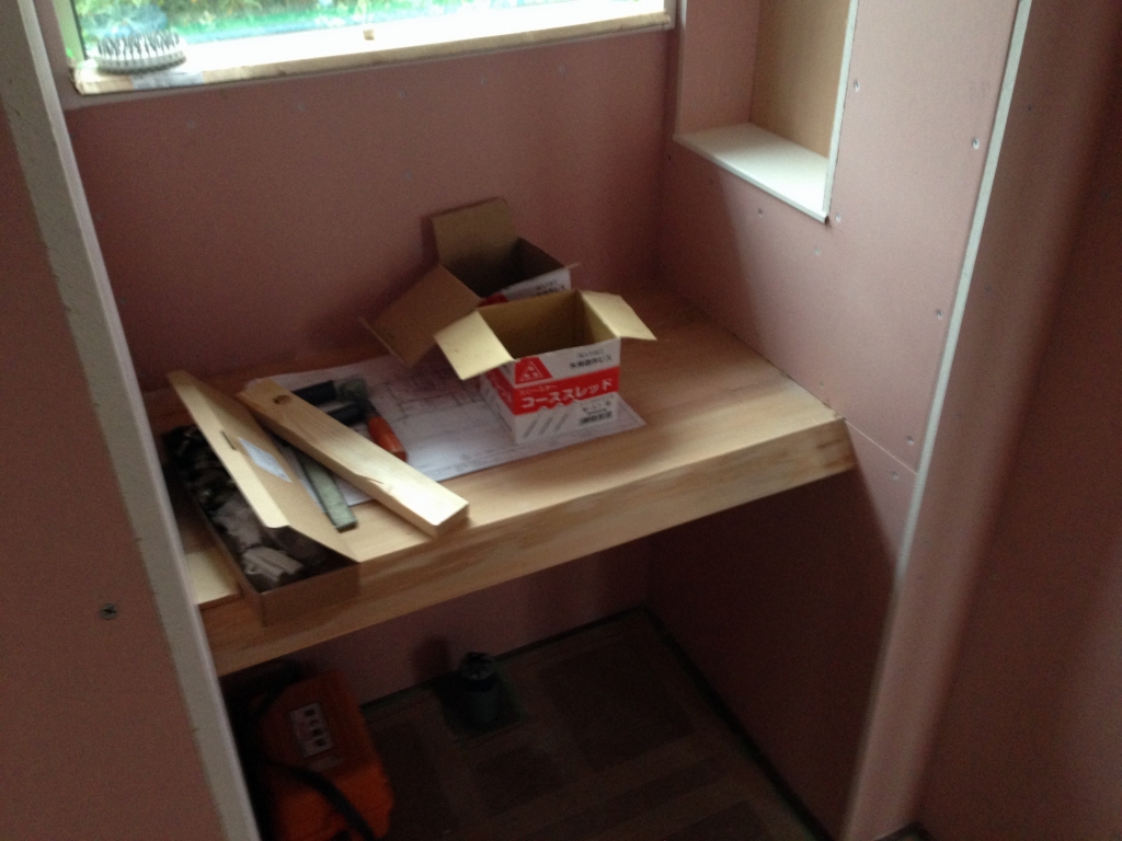 内部は引き続きカウンターなどを設置!杉の無垢材です(#^.^#)
