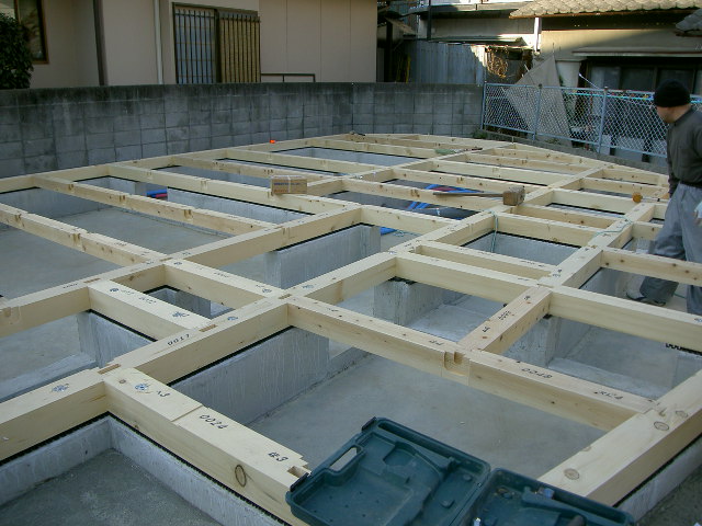 本日の土台敷きに間に合うように私(F.T)が老体に鞭を打ちながら