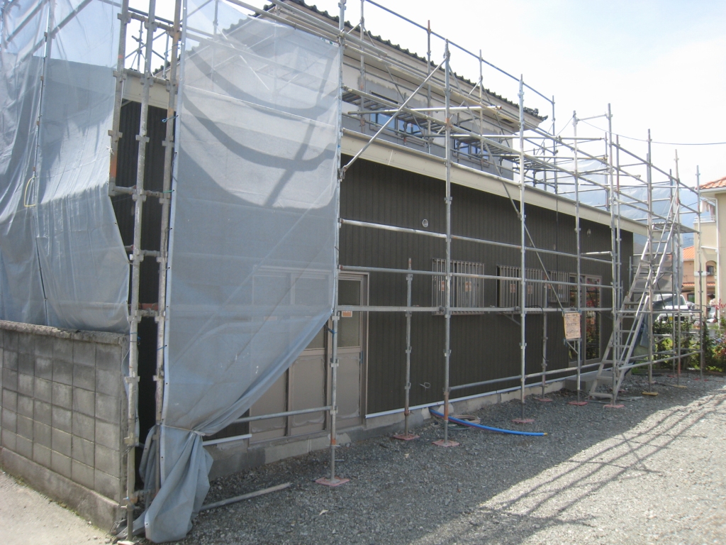 1階の外壁は木目柄へとデコレーションされました(^^)/