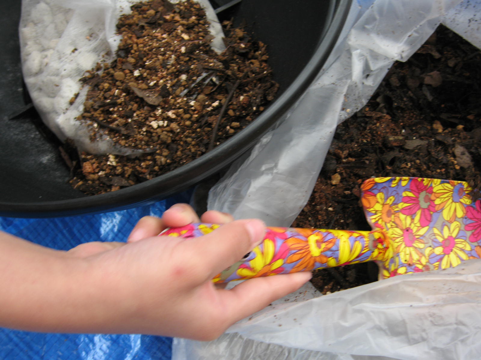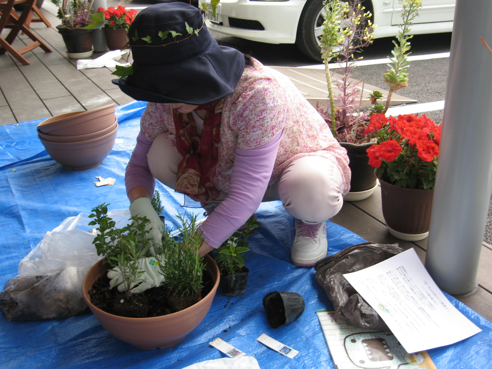 先生からの指導を頂きながら進めると、鉢底の石の敷き方や苗の手入れ方法など…たくさんのポイントに驚きです。(゜o゜)