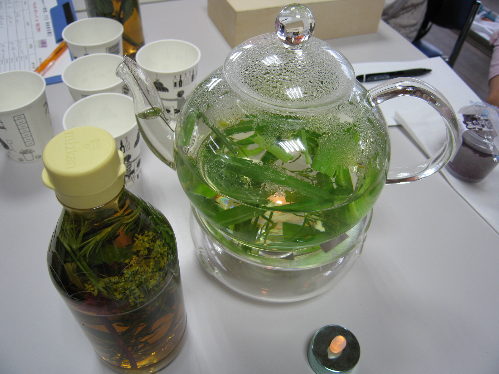 本日のお茶は営業所で育っている(レモングラス)を摘み採って使用しました。とってもいい香り(^-^)。