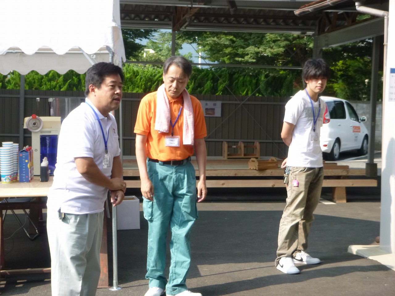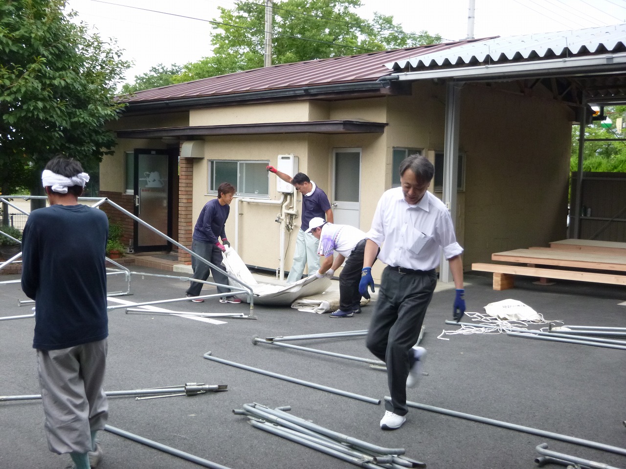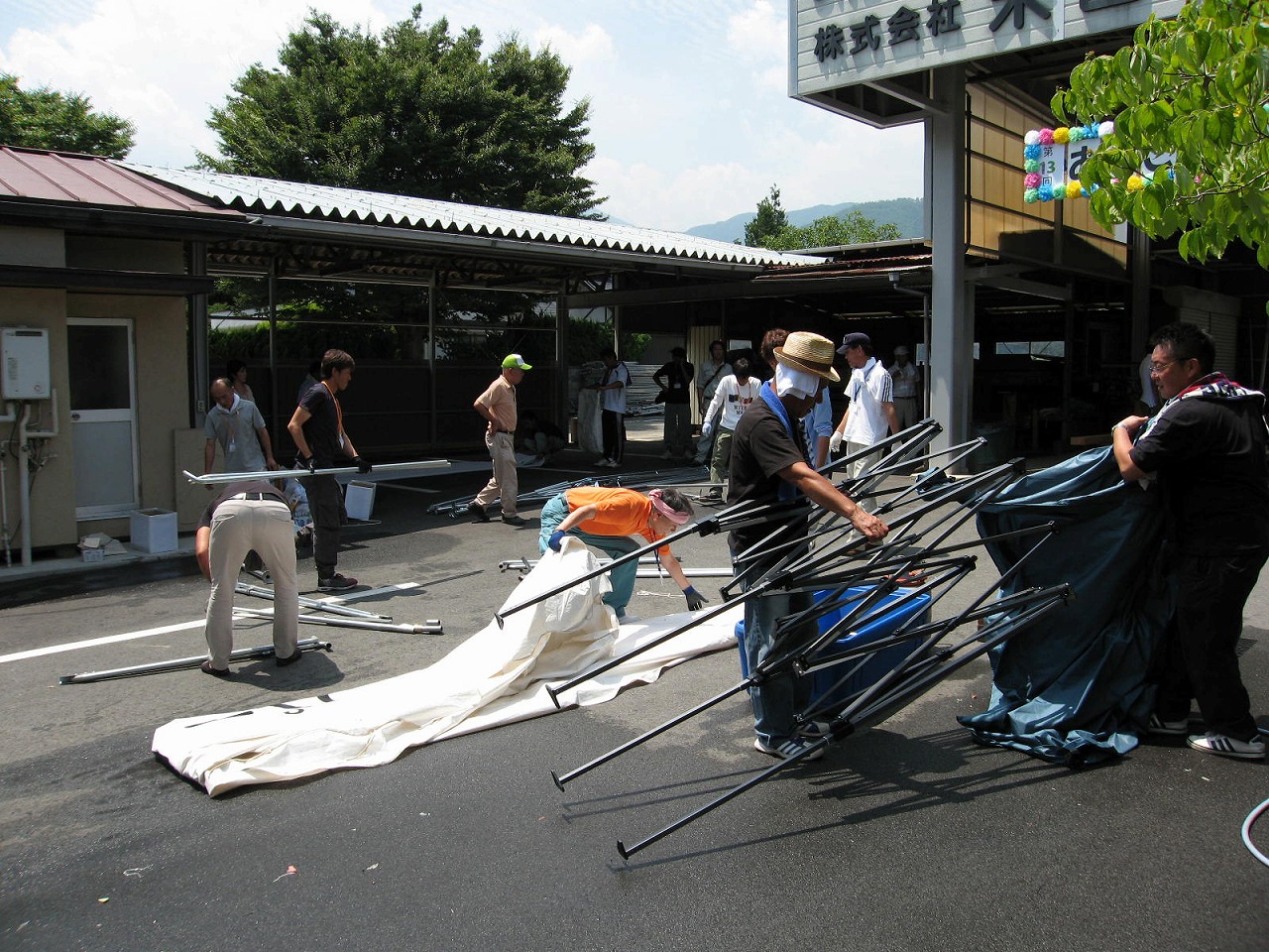 連日の猛暑日に備えて大型扇風機+ミストが大活躍。