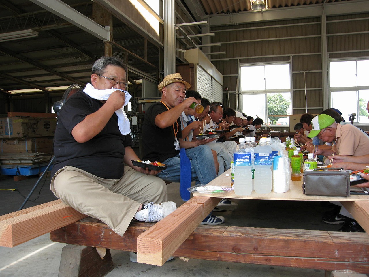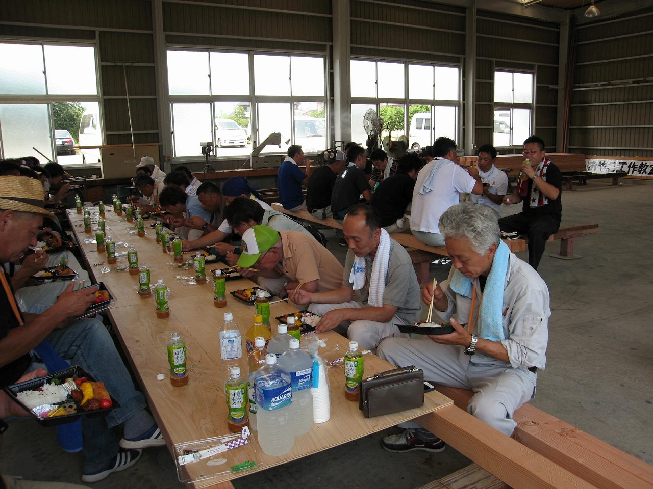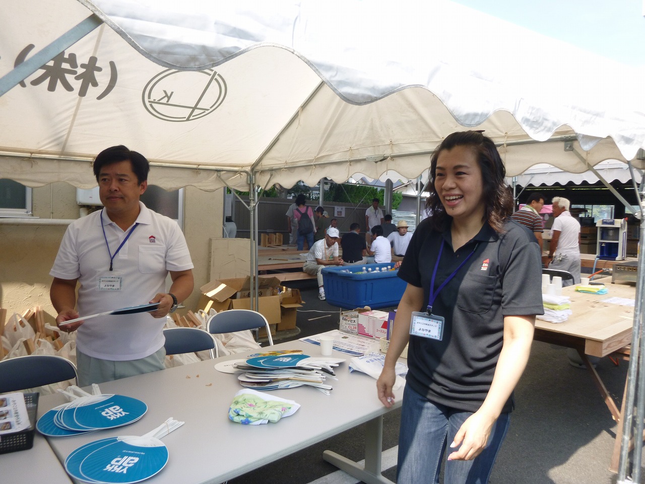 連日の猛暑日に備えて大型扇風機+ミストが大活躍。