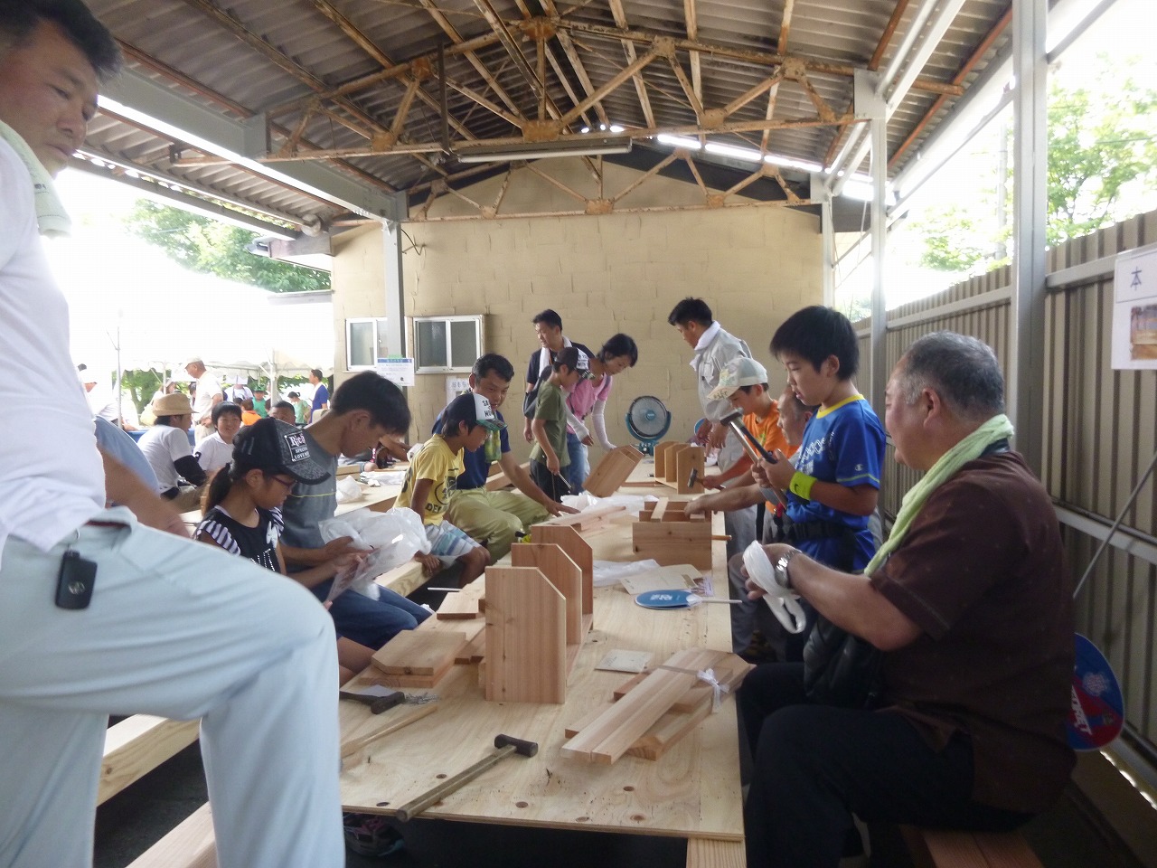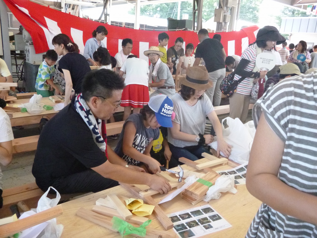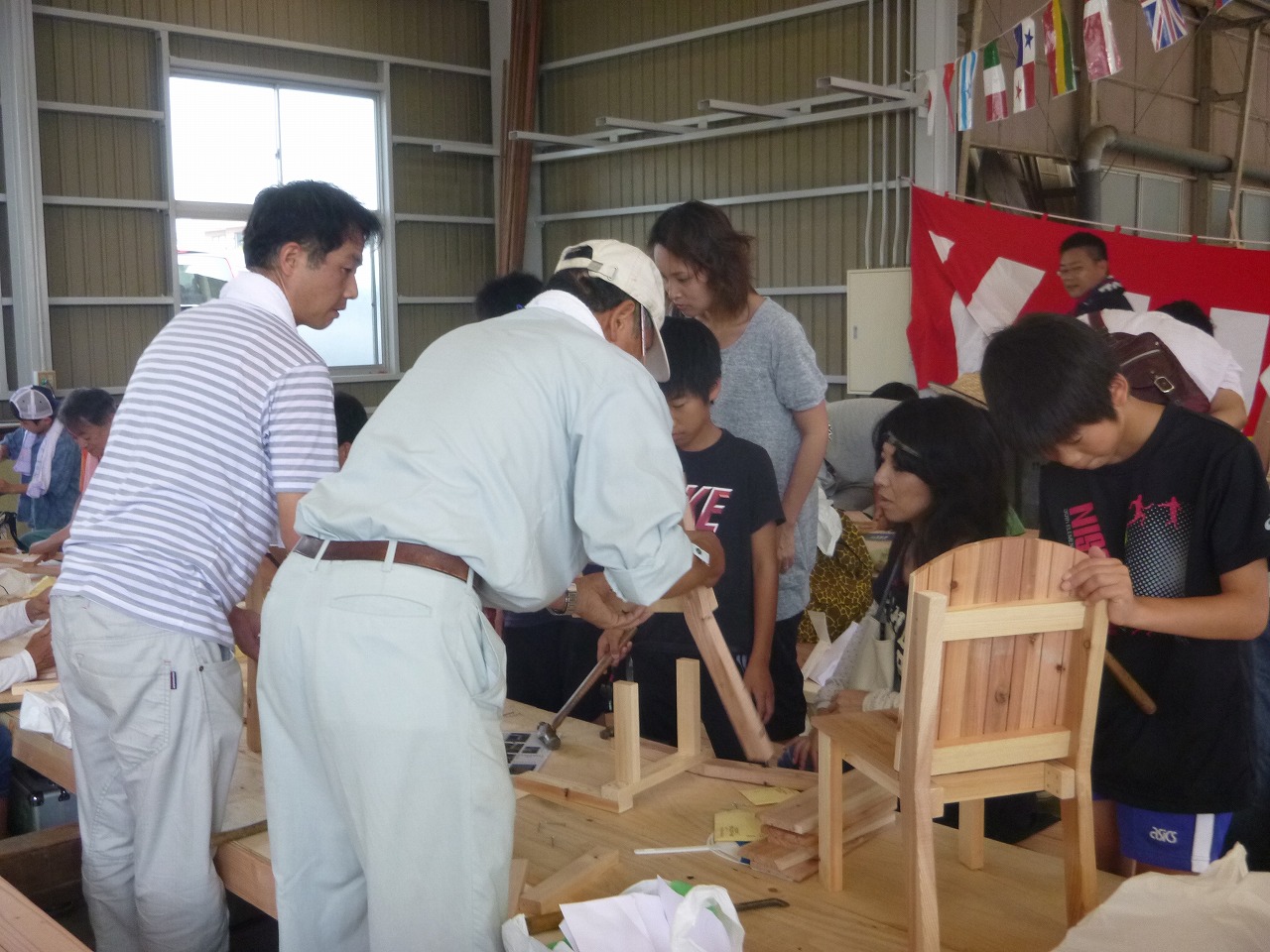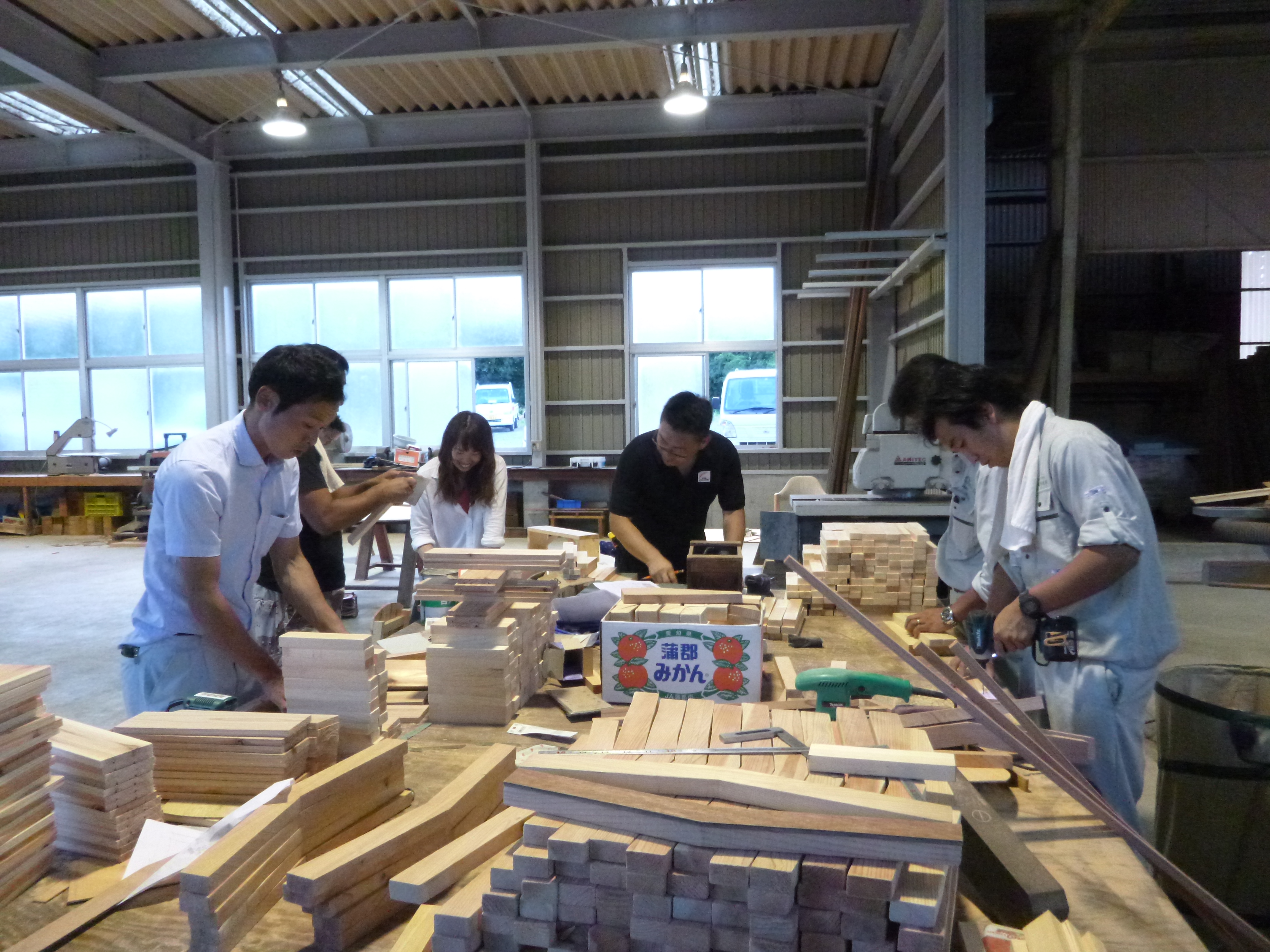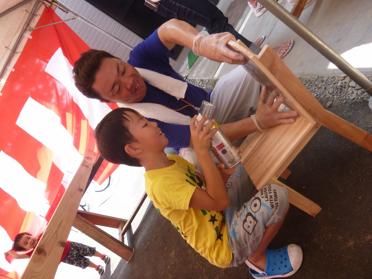 ①おもちゃ箱 ②フラワースタンド ③本棚 ④ベンチ ⑤ドールチェア と各内容別に、社員・パートナーの指導の元作業が始まっています。(^-^)