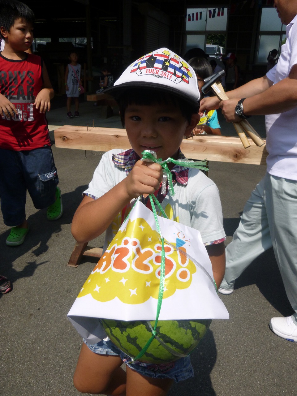 今年初の「くぎ打ち大会」も盛り上がり…各優勝者にはメダル+スイカのプレゼント![]()