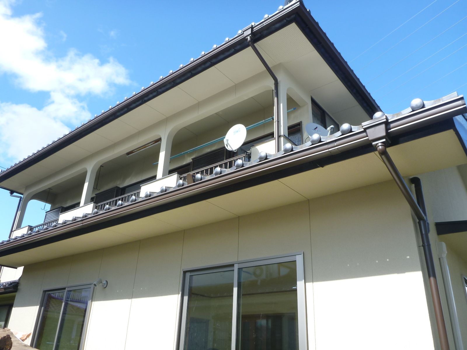 外部の工事として、・外壁、軒天、破風板の塗装 ・樋の交換 をしました。