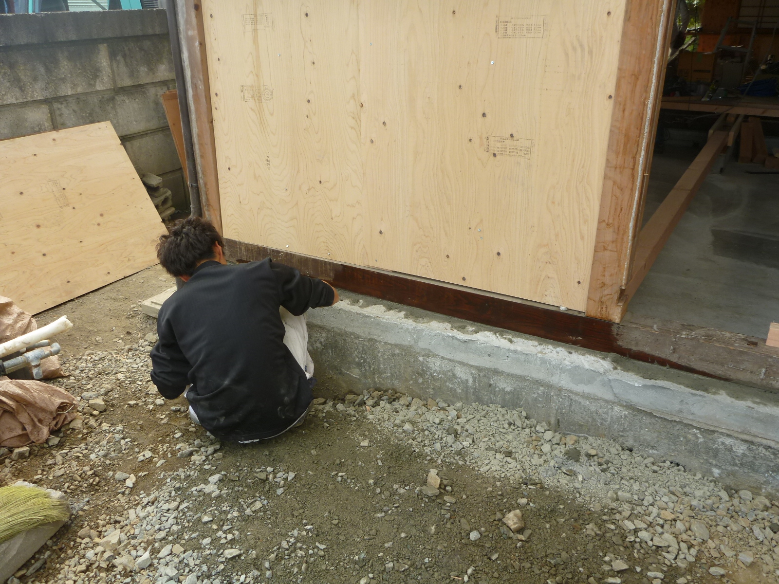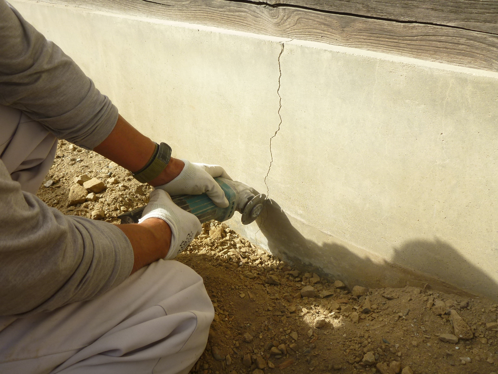 この日は職人さんが基礎のクラックの補修をしていました!!